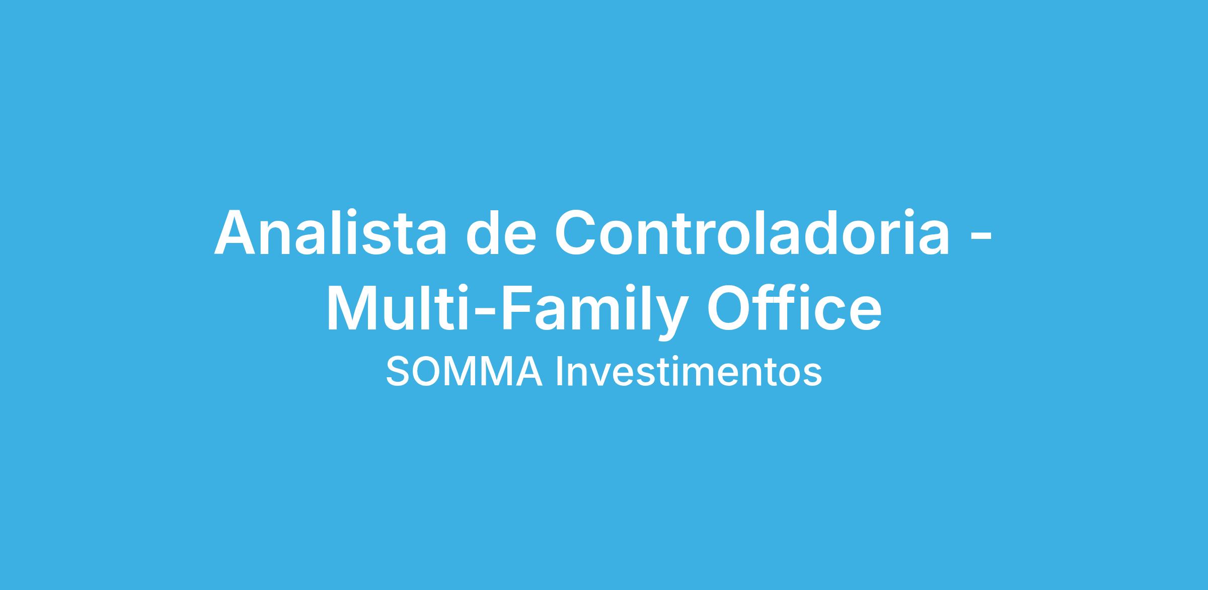 A SOMMA INVESTIMENTOS está em busca de um(a) Analista de Controladoria para atuar em nosso Multi-Family Office