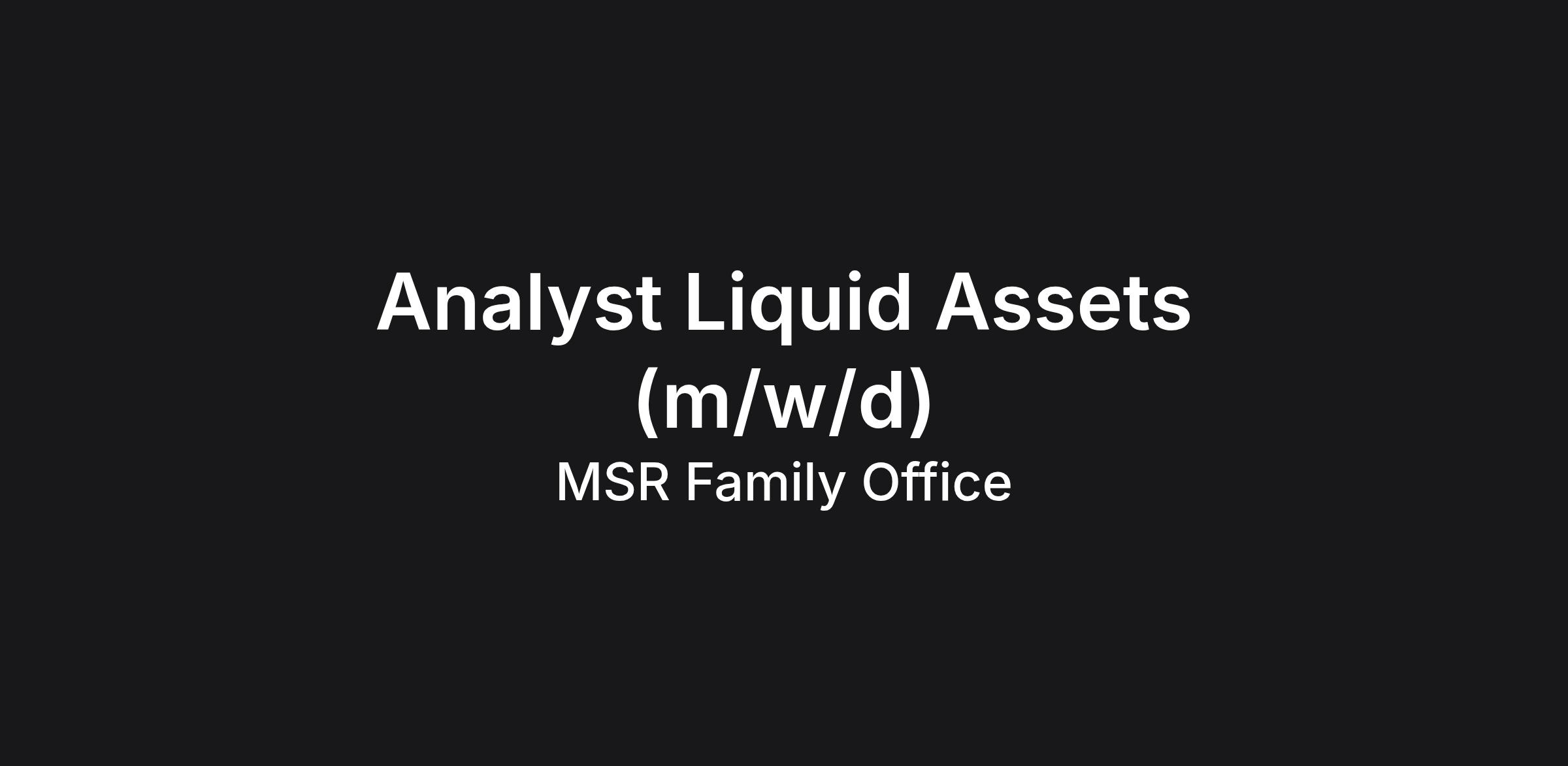 Der Bereich Managerauswahl Wertpapiere ist ein zentraler Fachbereich im Ressort Liquides Vermögen und befindet sich im Aufbau. Mit der neu geschaffenen Position Analyst Liquid Assets wird die Ressortleitung bei der Weiterentwicklung des Bereichs unterstützt. Die Funktion umfasst eine enge Zusammenarbeit mit der Ressortleitung, unseren Mandantinnen und Mandanten, den Beraterinnen und Beratern, dem Management sowie externen Dienstleistern und Netzwerkpartnern.