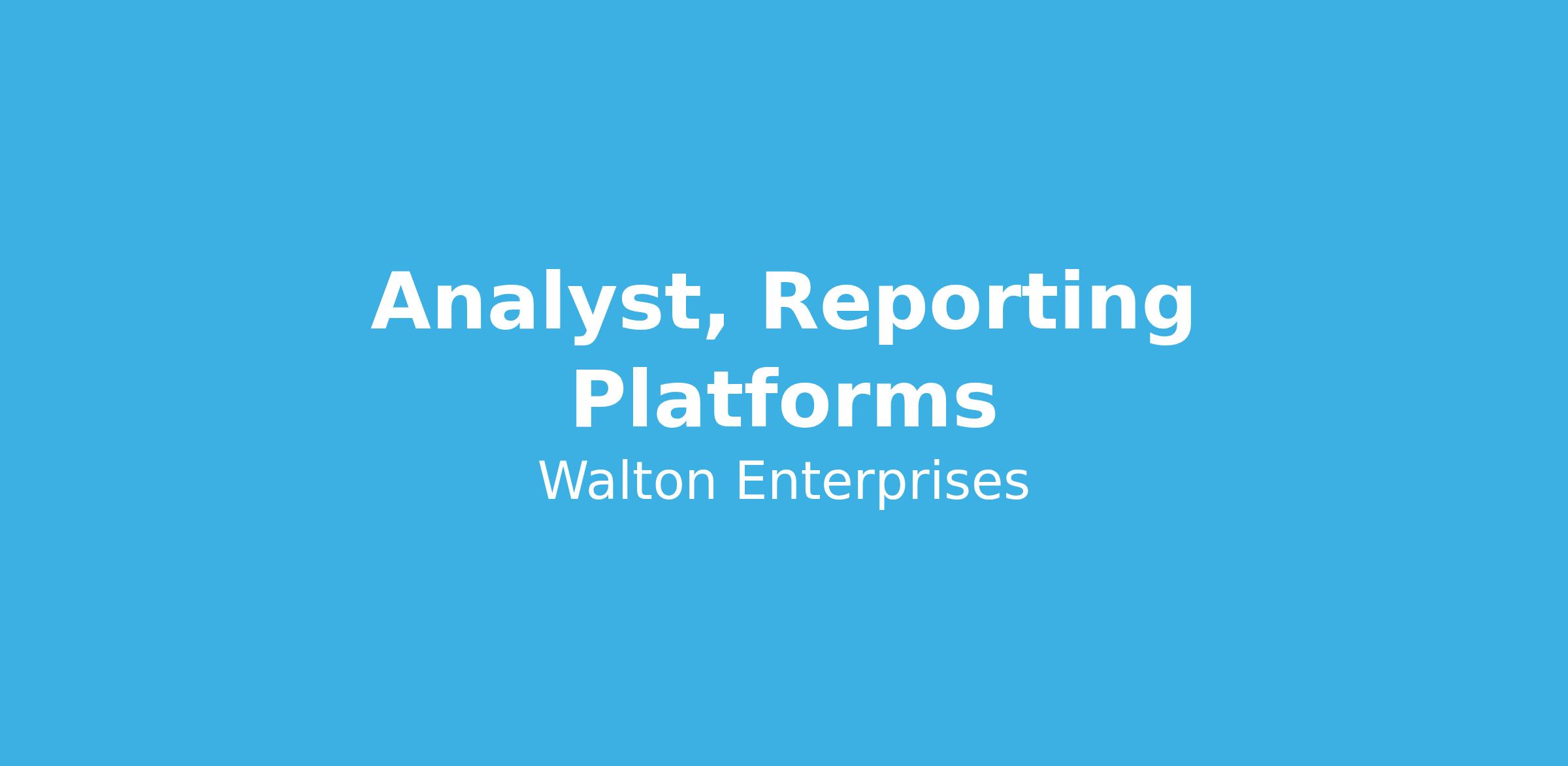 Walton Enterprises is seeking a qualified Reporting Analyst that will focus on the reporting platform. The Reporting Analyst primarily implements decisions and maintains data as recommended by the Reporting Team. The role also requires a significant amount of both written and oral communication with and coordination between internal and external stakeholders. The work environment is fast-paced, and deadline driven.