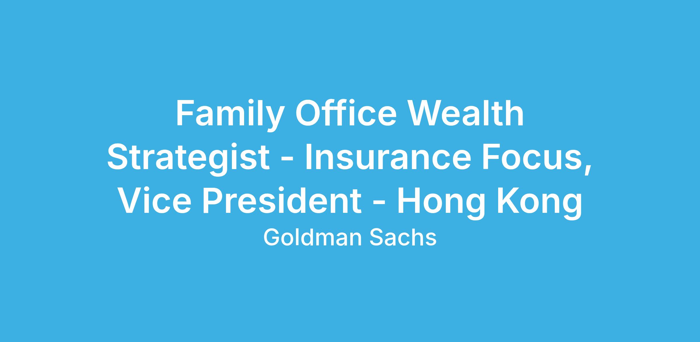 Goldman Sachs Wealth Management is in search of a Vice President to work closely with private wealth advisors to provide insurance brokerage services and insurance advice to our clients.
