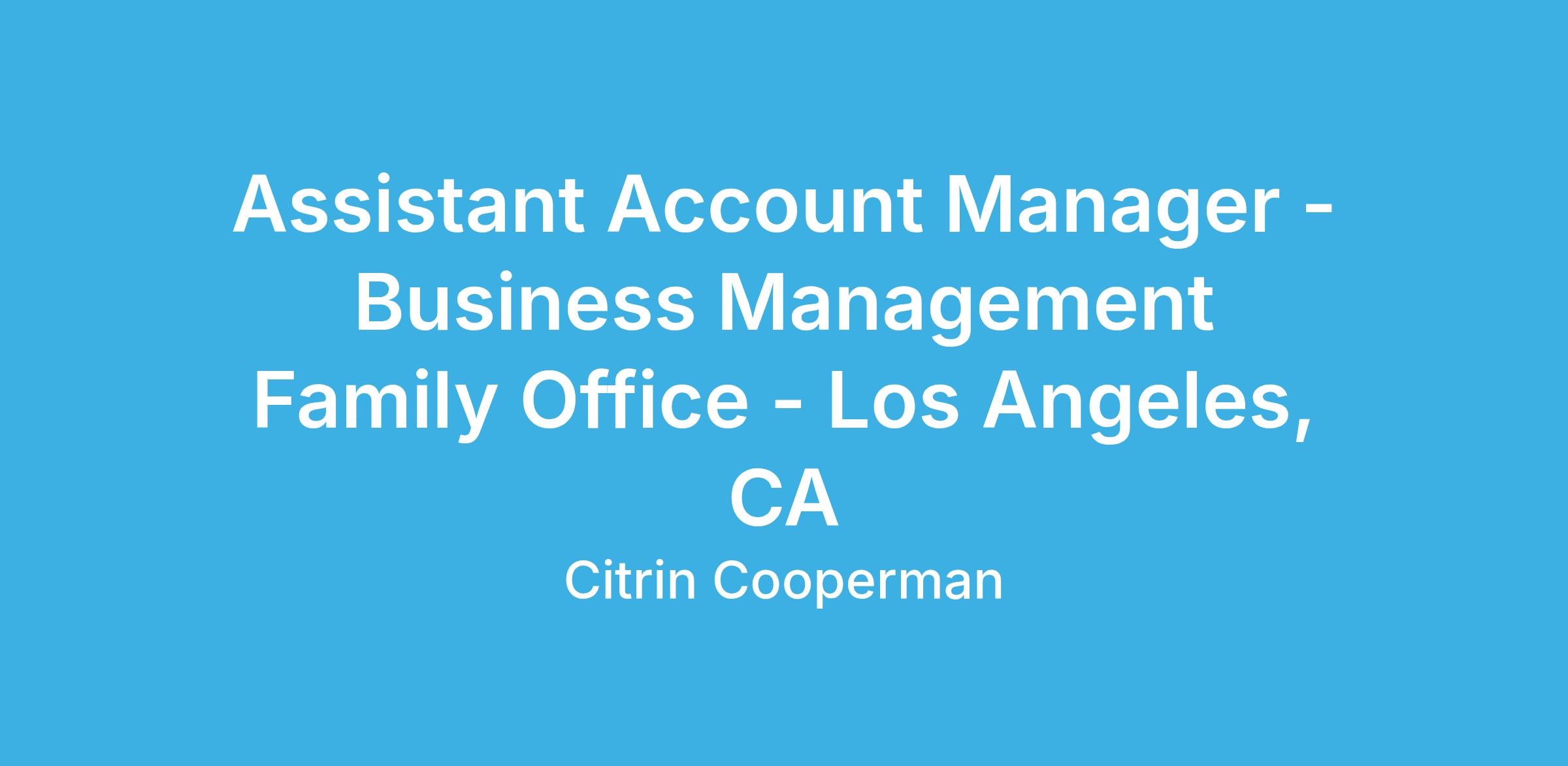 We are looking for an Assistant Account Manager to join the Business Management & Family Office practice in our Advisory Department. As an Assistant Account Manager, you will be responsible for: