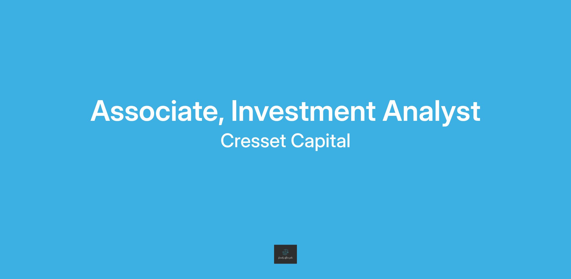 Cresset is seeking an Associate, Investment Analyst to join Cresset’s Wealth Advisory team. The Investment Analyst will be key in delivering exceptional experiences for high-net-worth (HNW) and ultra-high-net-worth (UHNW) individuals and families. This position will work closely with the Wealth Advisors assisting the team with investment and portfolio management.
