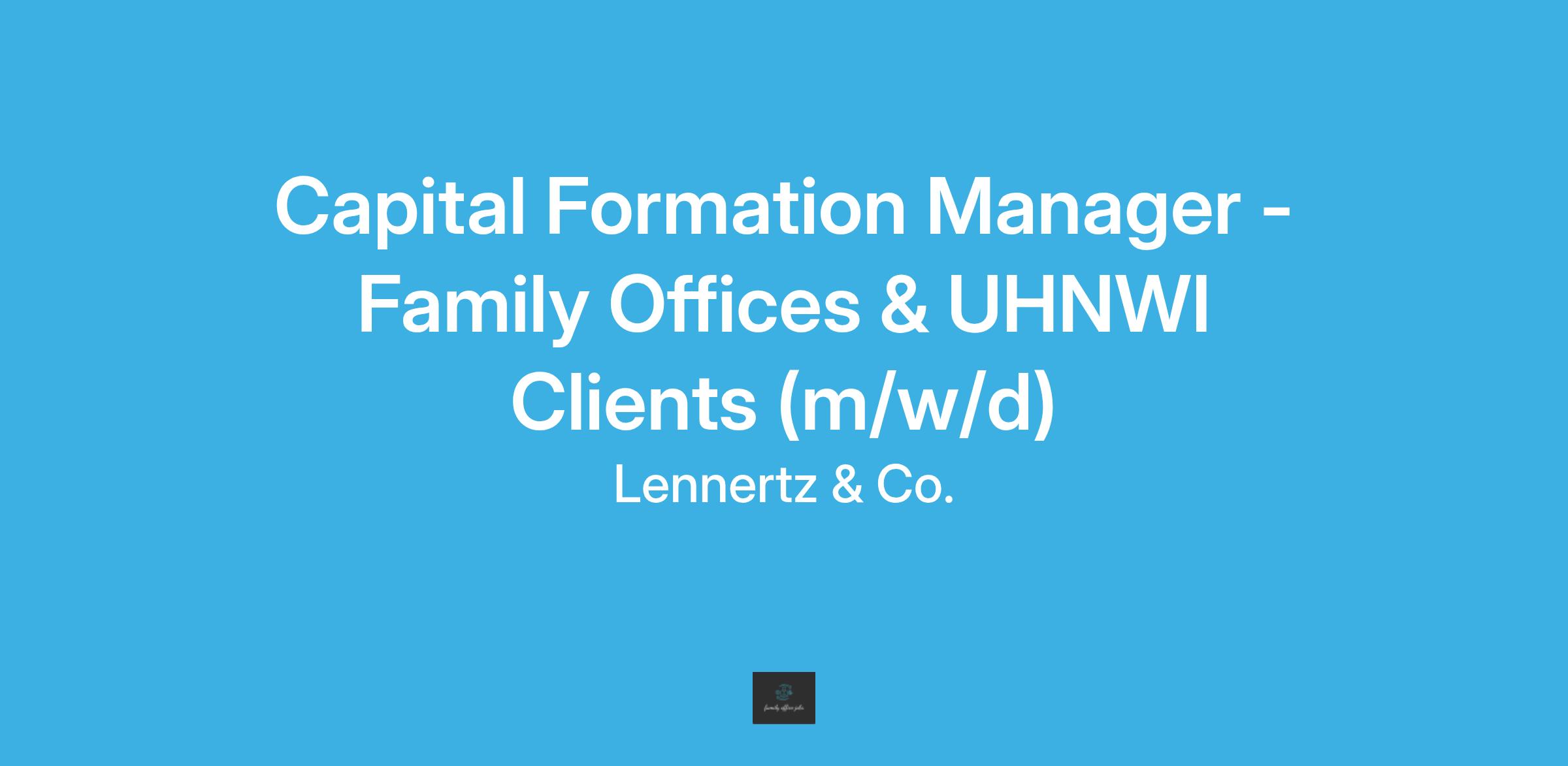 - Langjährige relevante Erfahrung im Capital Formation, Investor Relations, Wealth Management, Family Office oder Vertrieb anspruchsvoller Finanzprodukte