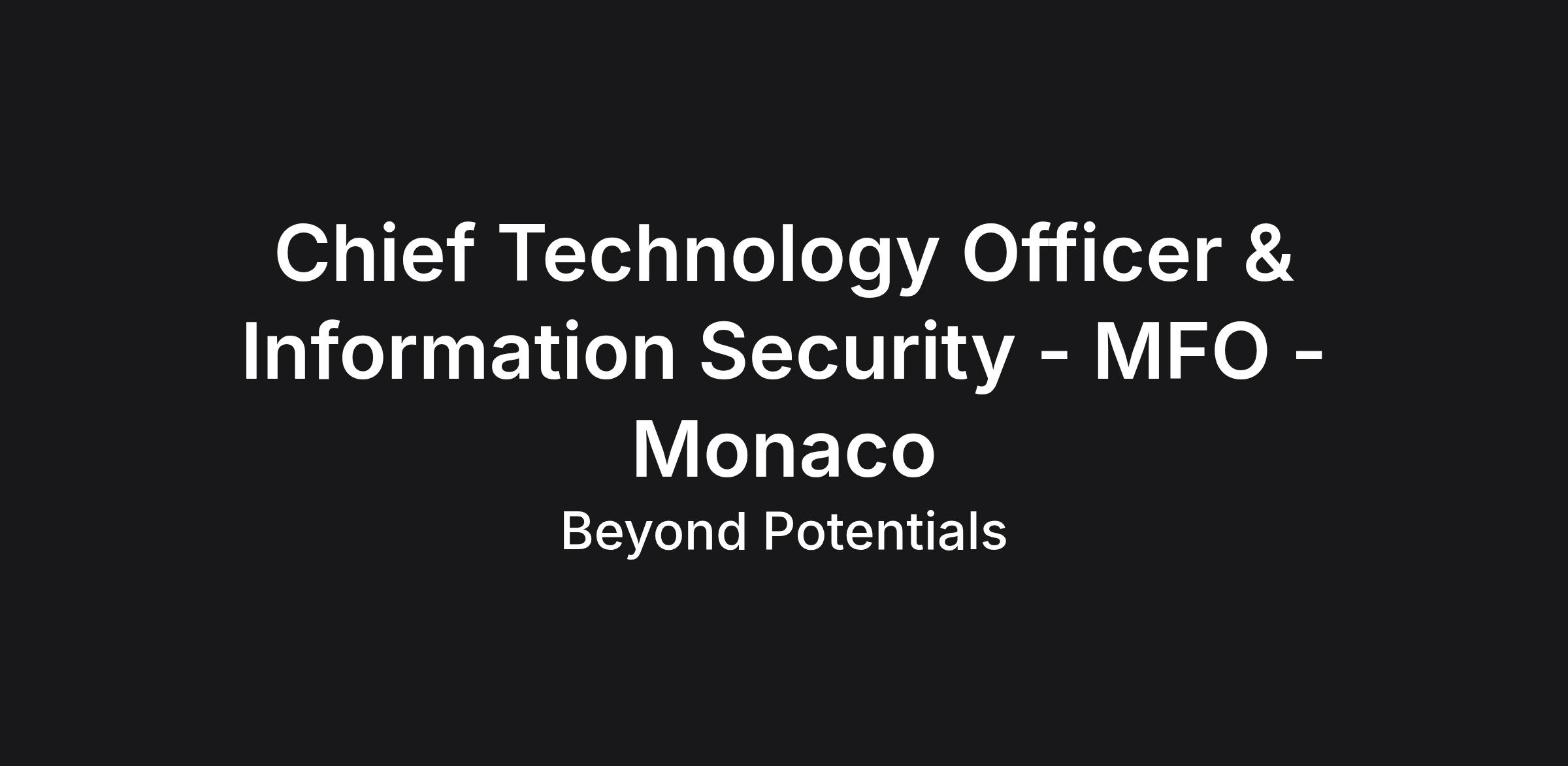 We have been exclusively mandated in Monaco for a RARE Chief Technology Officer ( CTO) & Information Security role by a young and dynamic Multi Family Office. The company is building a next-generation integrated wealth & asset management platform, designed to support a multi-jurisdictional, multi-asset, and highly regulated financial environment. The future CTO will evolve in a very discrete, confidential and UHNW environment.