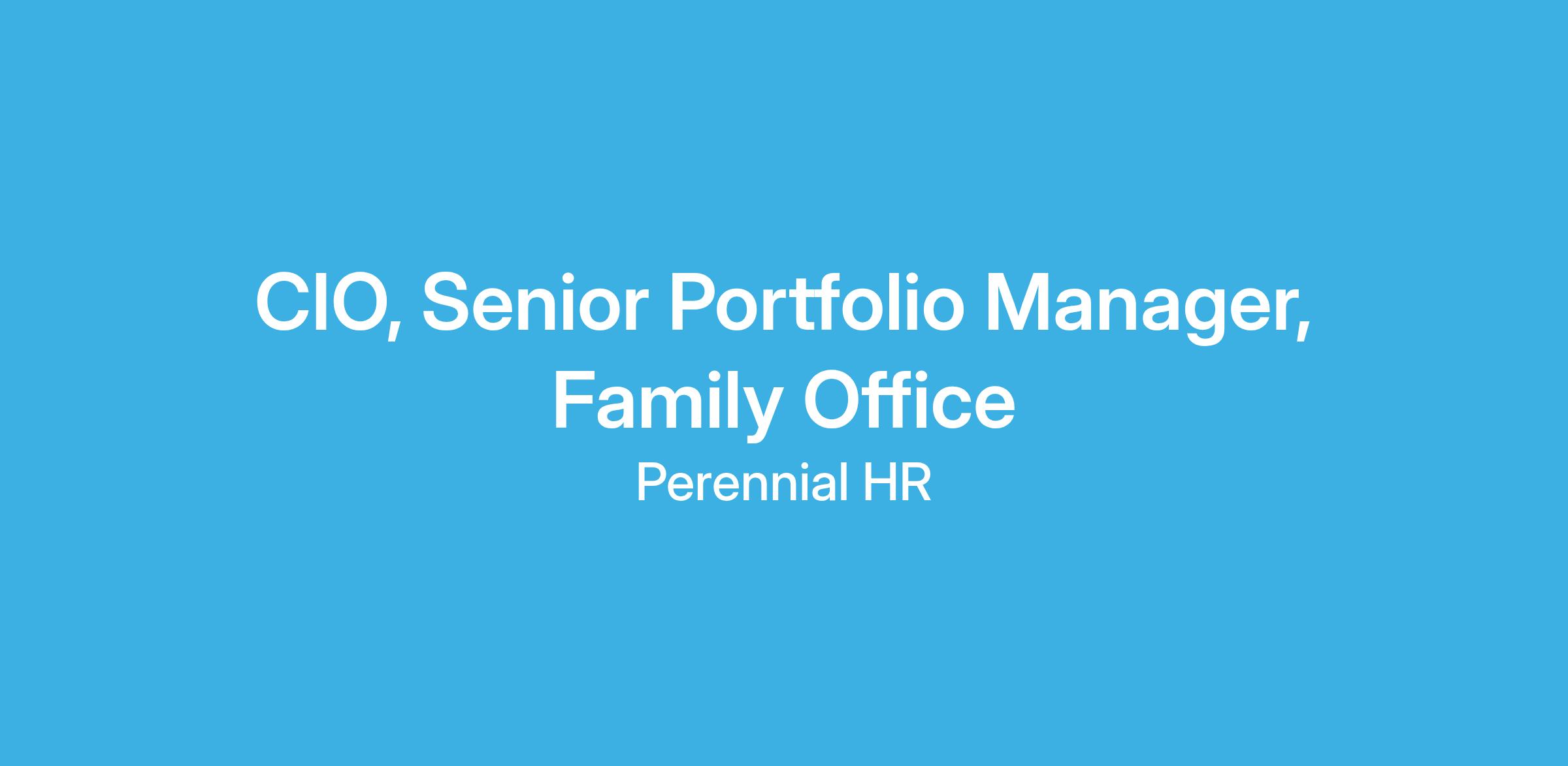 CIO, Senior Portfolio Manager, Global Family Office