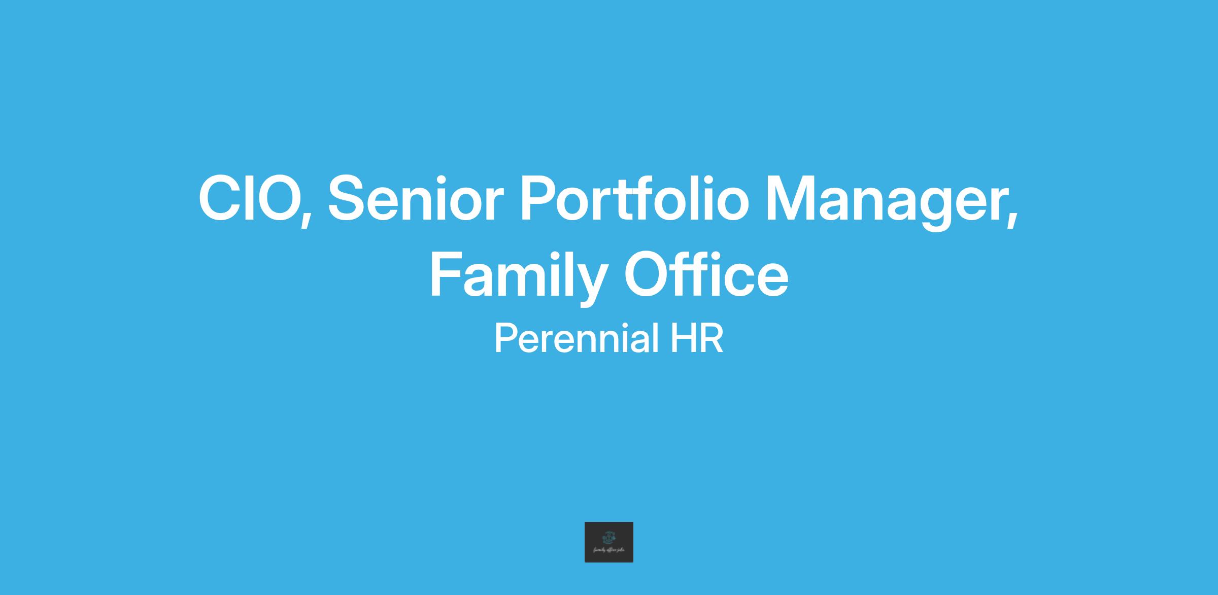 CIO, Senior Portfolio Manager, Global Family Office