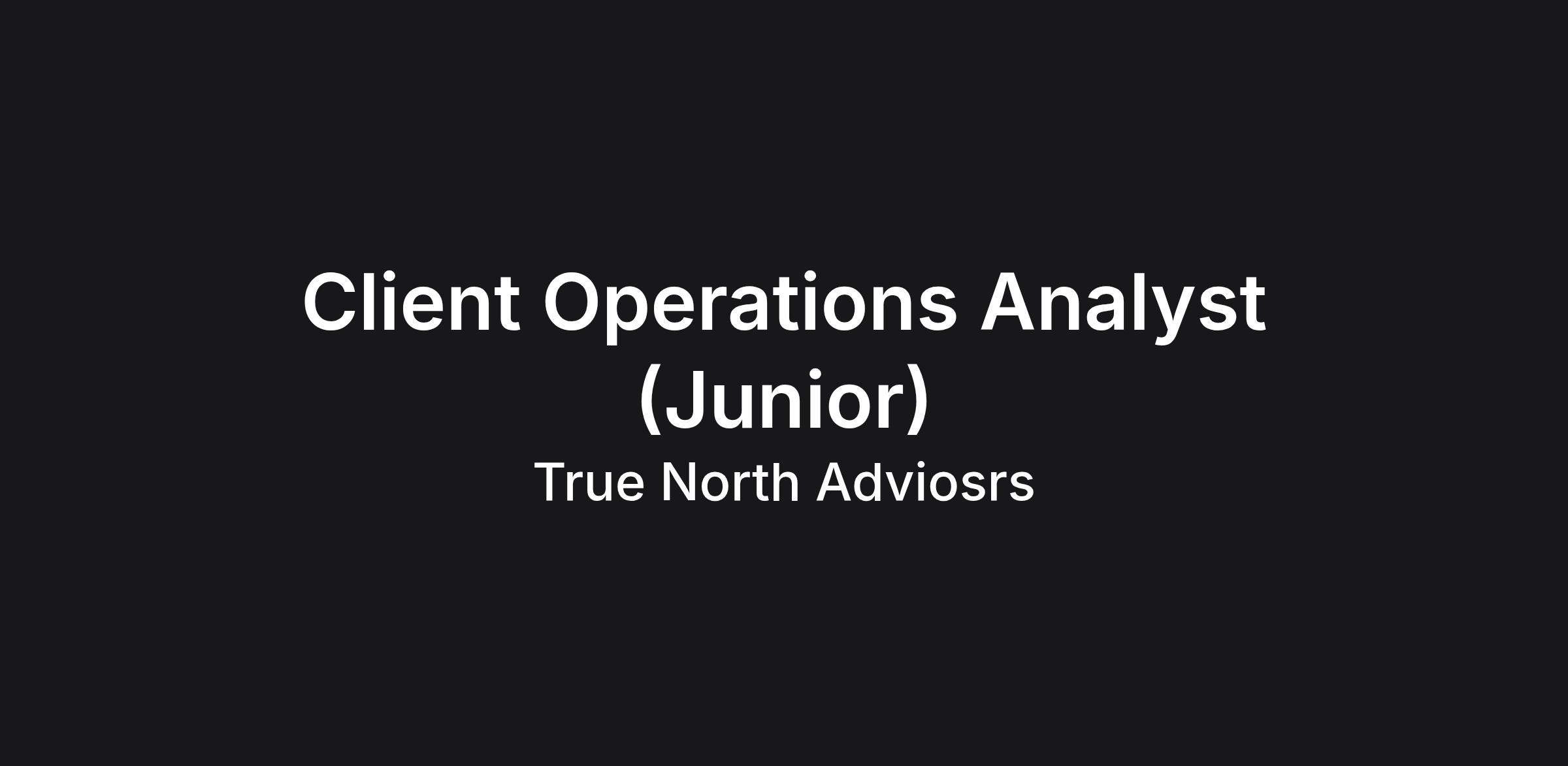 True North Advisors is currently hiring for a Junior Client Operations Analyst position. True North is a private Wealth-Advisory and Multi-Family Office that serves the wealth and investment management needs of ultra-high-net-worth families, business owners, and entrepreneurs. This is a full-time support role that reports to the Manager of Client Operations.