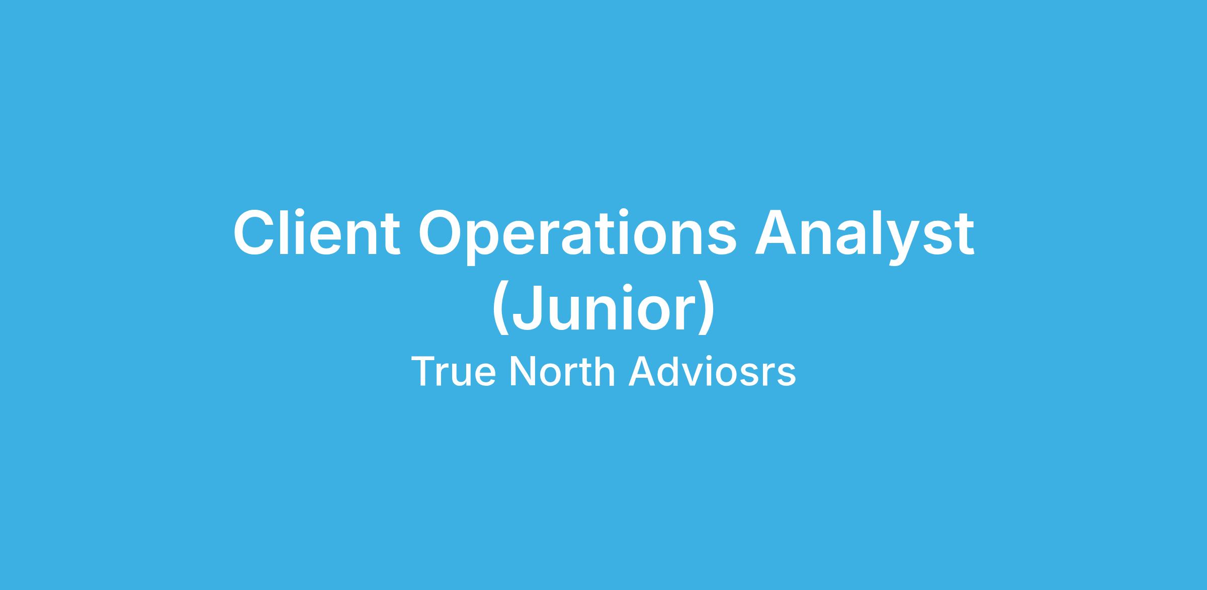 True North Advisors is currently hiring for a Junior Client Operations Analyst position. True North is a private Wealth-Advisory and Multi-Family Office that serves the wealth and investment management needs of ultra-high-net-worth families, business owners, and entrepreneurs. This is a full-time support role that reports to the Manager of Client Operations.