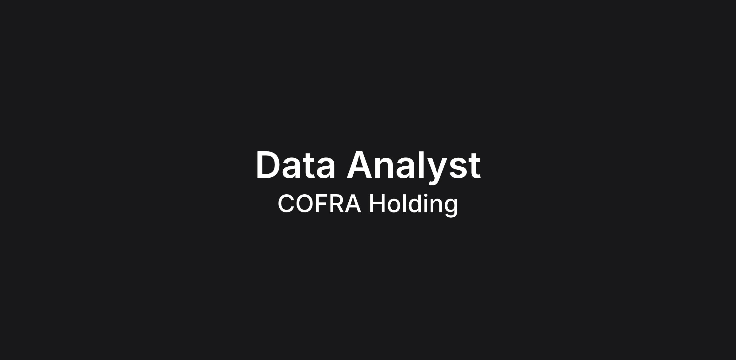 We're looking for an experienced Data Analyst to join our COFRA team in Porto. You will join a multi-generational family business with a commitment to achieve systemic change across Liveable Cities, Responsible Capital, Clean Energy and Sustainable Food together with our management teams and mission-aligned external partners.