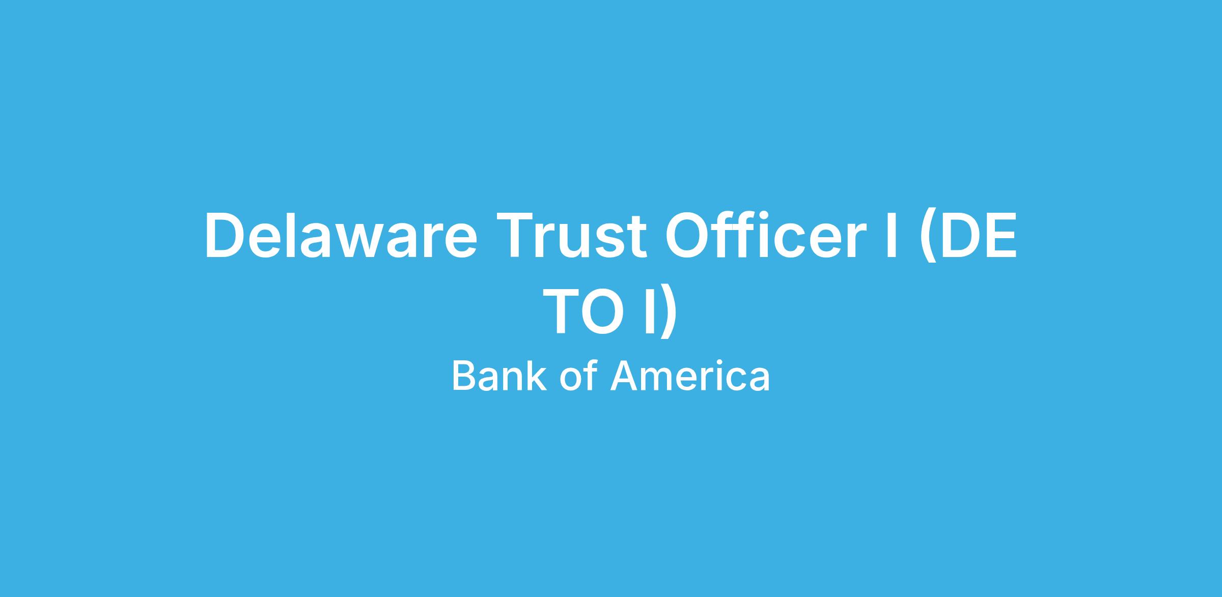 Delaware Trust Officer I (DE TO I), Wilmington, DE