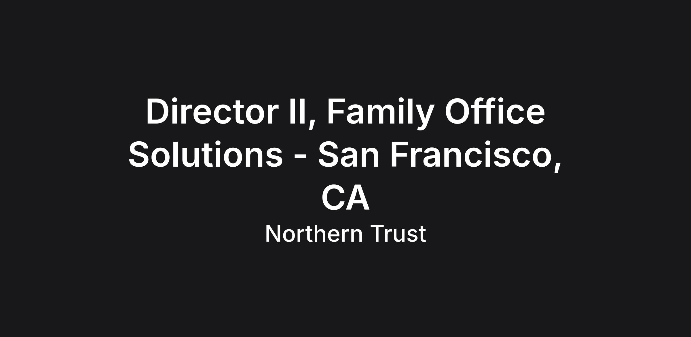 Director II, Family Office Solutions - San Francisco, CA