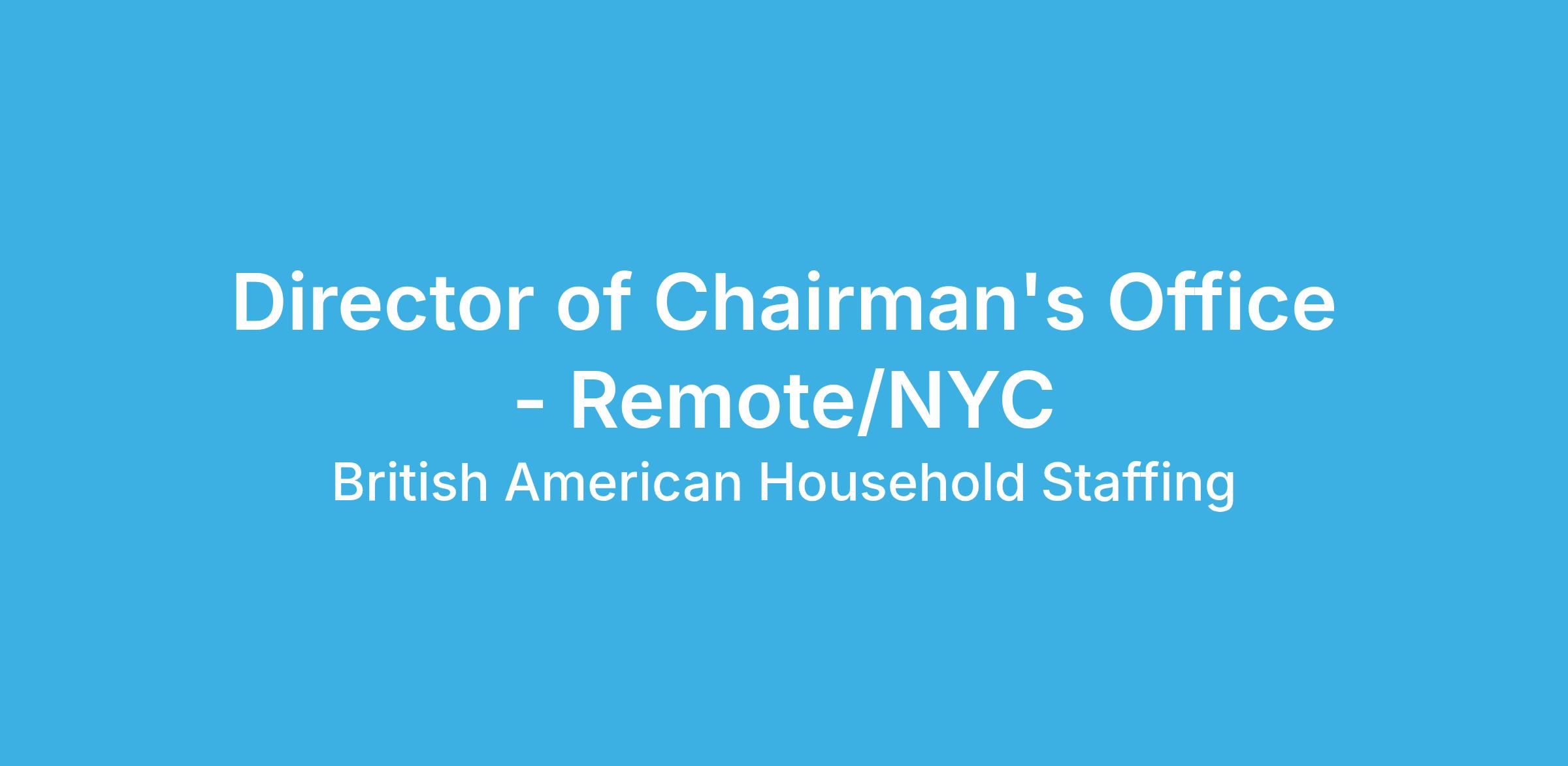 A single and successful business man is seeking a full-time, East Coast-based Director of Chairmans Office to oversee the day-to-day operations and management of a quickly expanding family office. The role will be based in New York City and will be hybrid with some in-person and some remote work. You will be working along side an extremely seasoned chief of staff who over sees the family office and the principal business and personal affairs.
