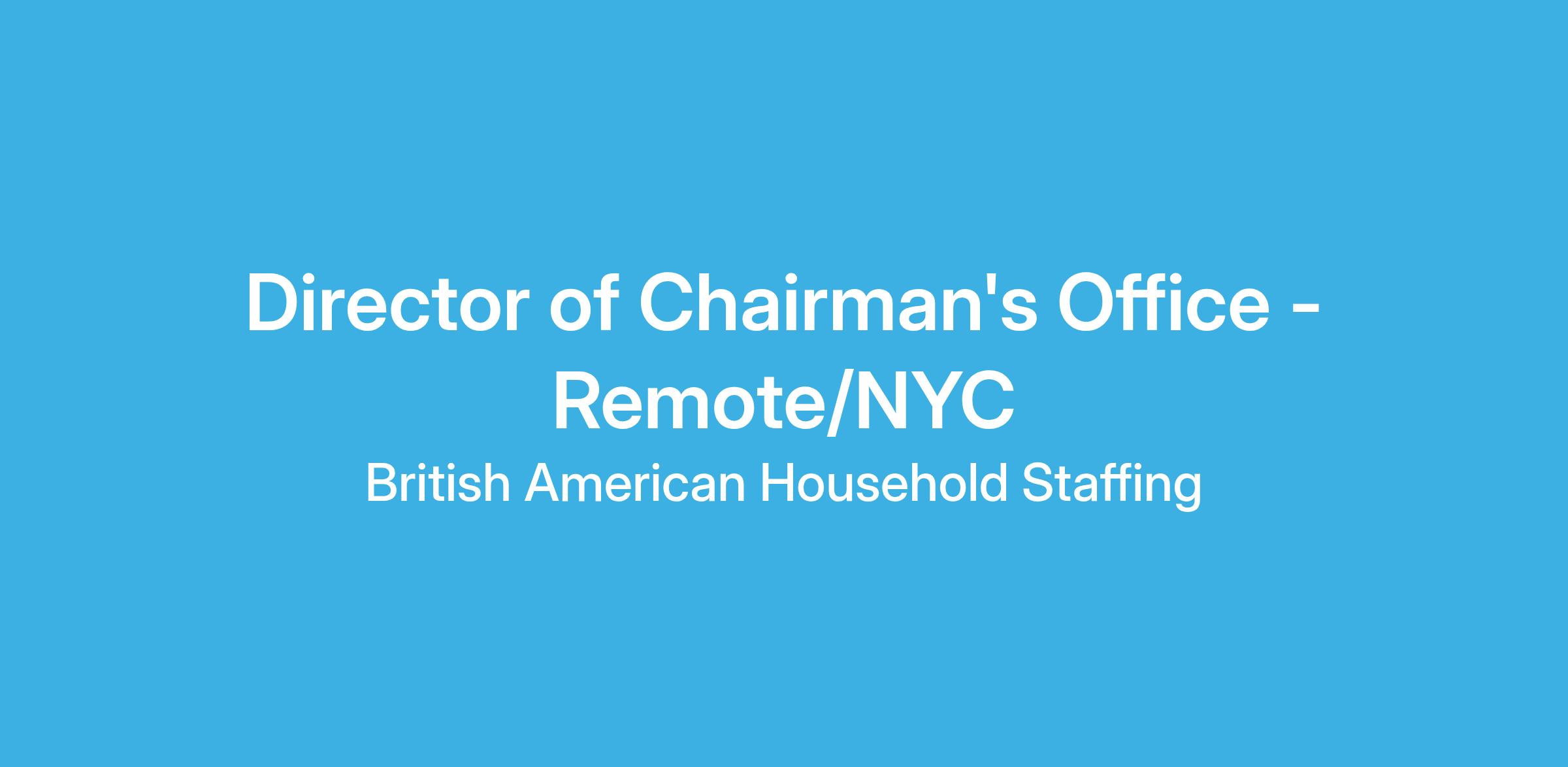 A single and successful business man is seeking a full-time, East Coast-based Director of Chairmans Office to oversee the day-to-day operations and management of a quickly expanding family office. The role will be based in New York City and will be hybrid with some in-person and some remote work. You will be working along side an extremely seasoned chief of staff who over sees the family office and the principal business and personal affairs.