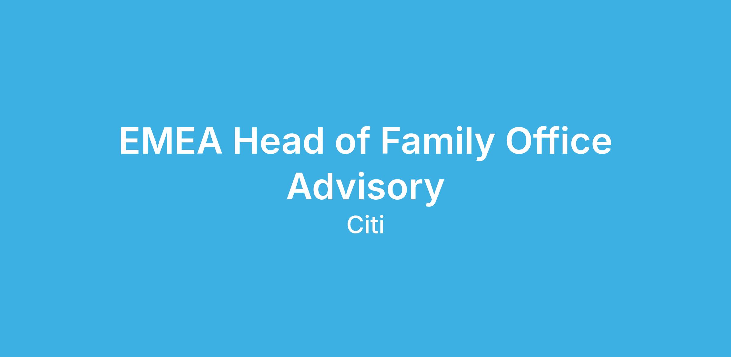 The EMEA Head of Family Office Advisory will be a senior leader in the GFO team, driving strategic initiatives to enhance client engagement and monetization, deliver bespoke advisory services, and foster impactful collaborations across the EMEA region. This pivotal role requires a seasoned professional adept at navigating the complex needs of ultra-high-net-worth families and their family offices. Working in close partnership with bankers, regional leadership, the GFO team, the Integrated Client Engagement (ICE) team, and other key functions, this role will be instrumental in expanding client and prospect relationships, driving significant financial contribution, and cementing Citi's position as an undisputed leader in the family office industry. This executive will also play an active role in developing new approaches and solutions to serve the evolving needs of family offices.