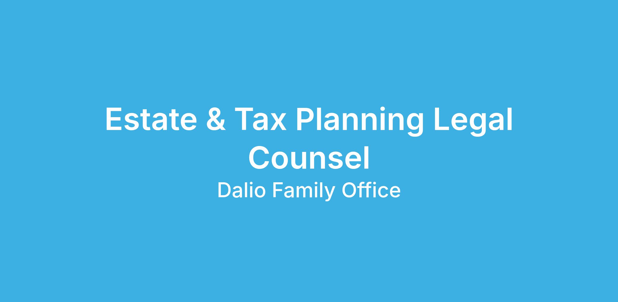 The Estate and Tax Planning (ETP) Pillar is responsible for delivering innovative solutions to help the Dalio family achieve their financial, philanthropic, and personal goals. ETP is a cross-disciplinary pillar whose initiatives frequently involve partnership with internal Trust, Investment, Finance, Legal, and other pillars as well as with external counsel and advisors.