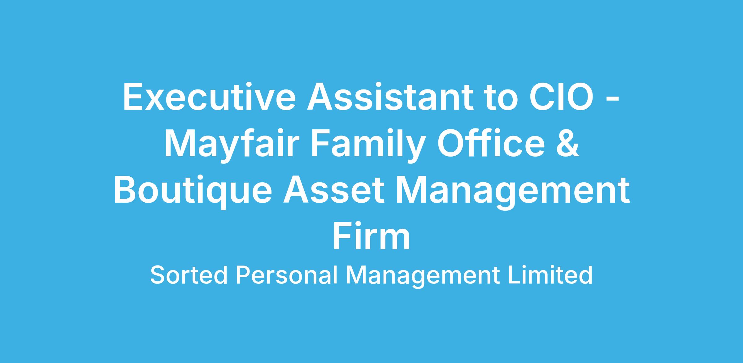 A highly regarded boutique asset management firm and family office based in London’s West End, is seeking an experienced Executive Assistant to provide seamless, high-level support to the Chief Investment Officer (CIO). This is a permanent role within a fast-paced, discreet and high-performing environment. You will serve as the primary EA to the CIO, managing all diary coordination, travel, meetings, and administrative support, and there will be crossover with the Senior Family Office Executive and the EA to the Senior Partner to ensure seamless coordination across shared activity. The role also offers scope to broaden your involvement across other areas of the business, especially in respect of investor relations and marketing. Following the combination of two major funds and a recent capital injection, a major relaunch is planned, and the successful candidate will be integral to this process both in terms of document production and interfacing with external marketing groups. Reporting into the CIO, this role will be well suited to a proactive and intellectually curious individual who thrives in a high-trust environment and takes ownership of outcomes.
