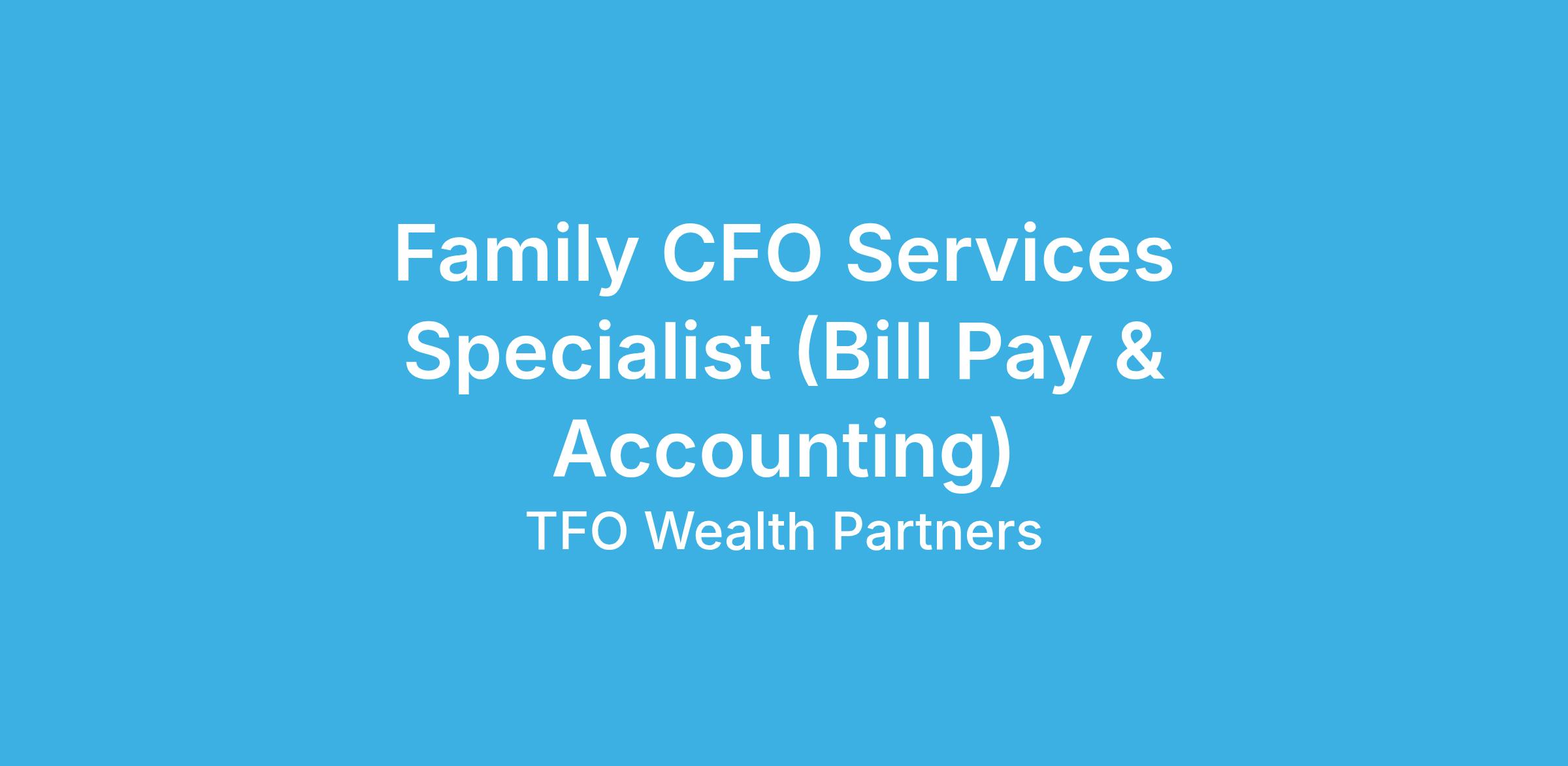 TFO Wealth Partners is seeking a Family CFO Services Specialist to join our Family CFO Services Team. This role is responsible for executing bill pay transactions and providing accounting support for high-net-worth (HNW) wealth management clients.
