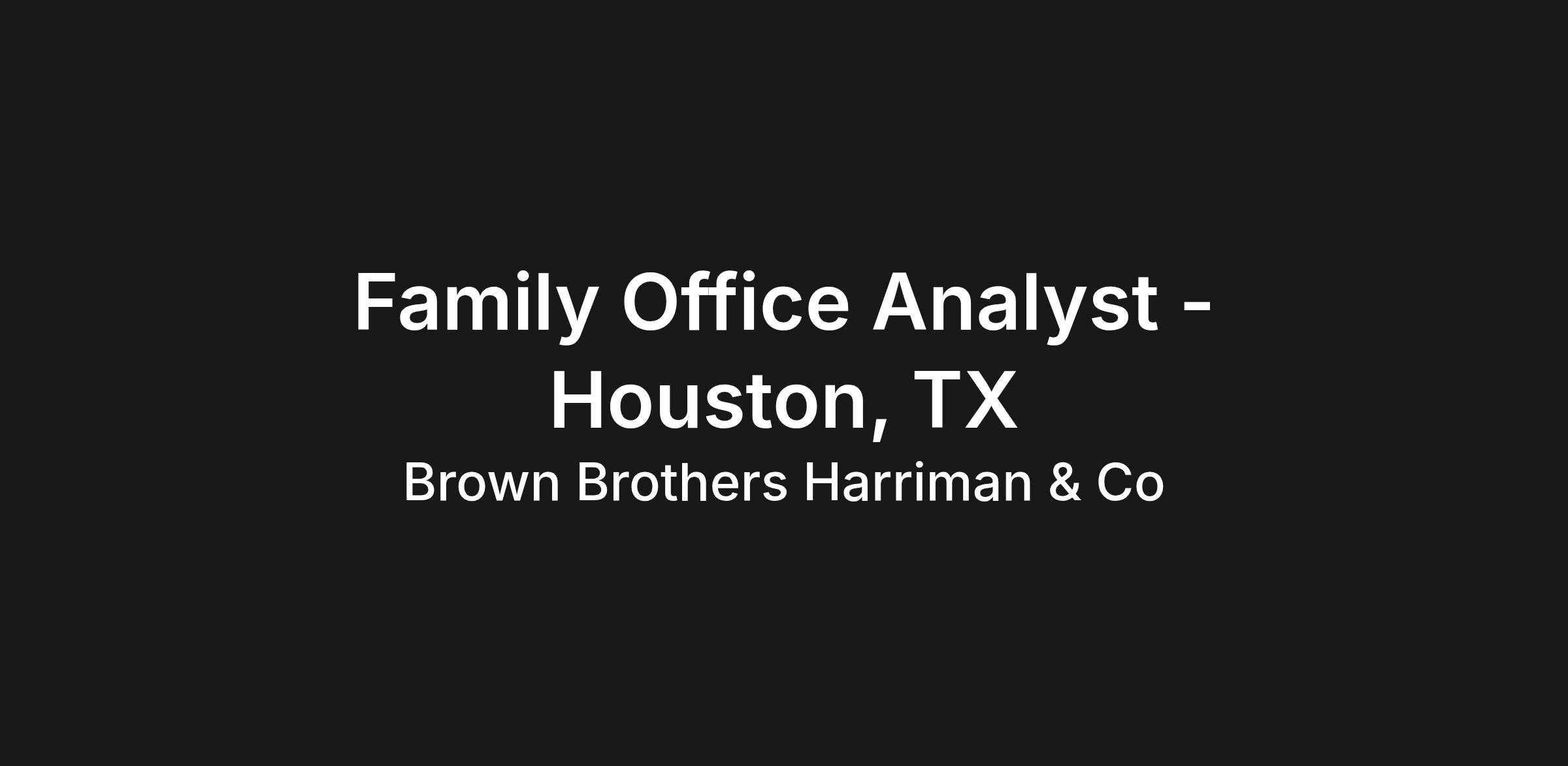 Join us as a Family Office Analyst