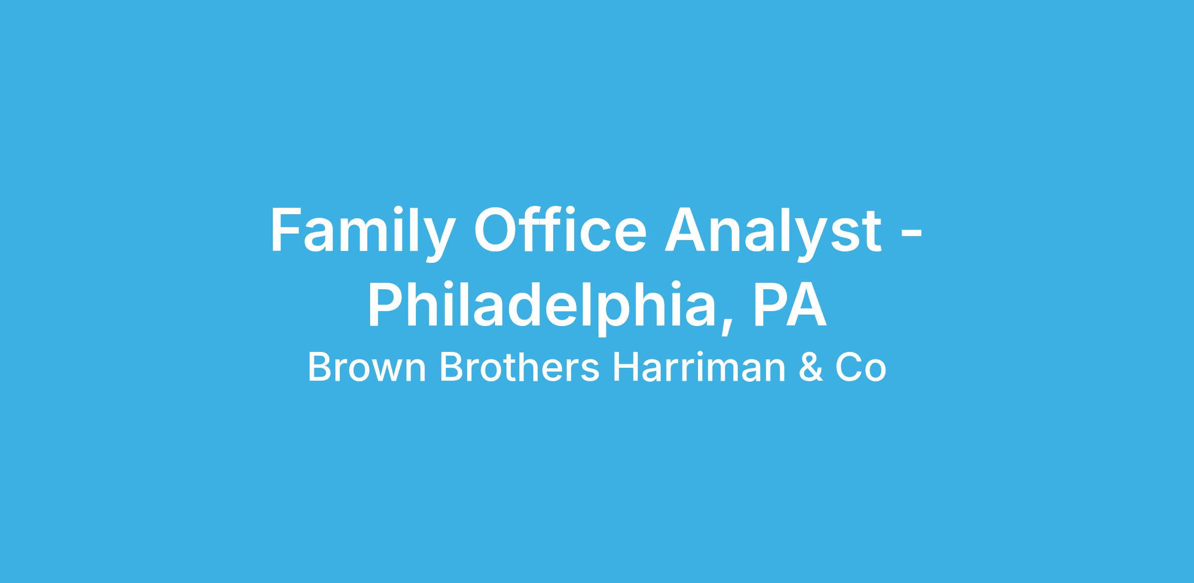 Brown Brothers Harriman is currently recruiting a Family Office Analyst (FOA) to join our Capital Partners, multi-family office (MFO) team in Philadelphia. In this role you will support the Relationship Manager (RM) by serving as the primary contact point for high-net-worth clients. You will also manage day-to-day activities of the RM’s client base and ensures that client needs are being met. The FOA manages all account maintenance activities and resolves any account related problems as well as prepares client presentation materials and, on occasion, will participate in client meetings.