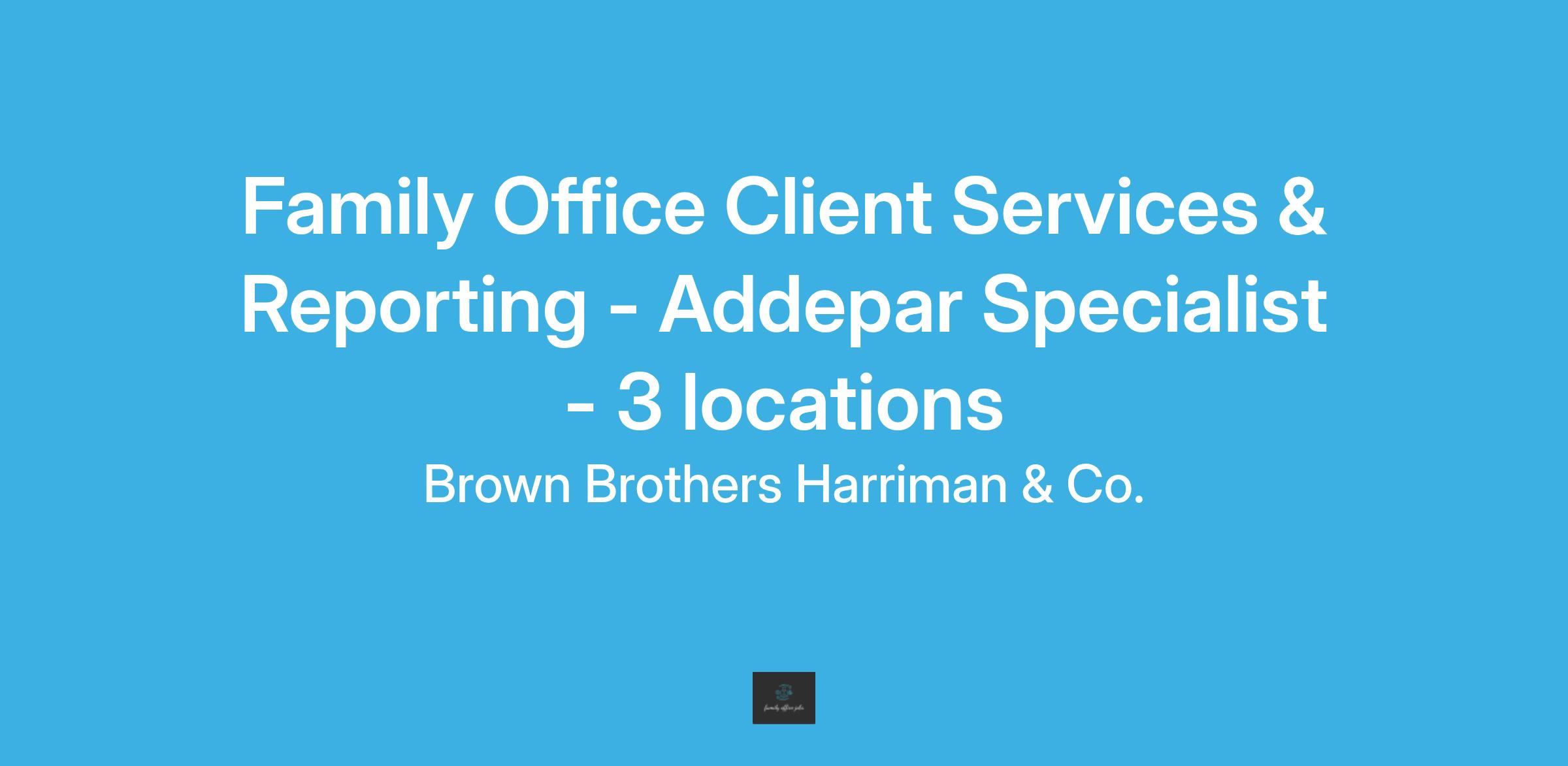 Brown Brothers Harriman is currently recruiting a Family Office Client Services & Reporting - Addepar Specialist to join our Capital Partners team. In this role, you will be responsible for providing consolidated reporting to high-net-worth clients and family offices. You will be responsible for providing consolidated and custom reports in a timely and accurate manner. You will work directly with Relationship Managers and 3rd party advisors. You will handle all client inquiries and resolve issues related to reporting. To be successful, you will need expertise using Addepar, strong technical and interpersonal skills, and communication skills. Our ideal candidate is determined to tackle problems, can skillfully coordinate internal teams, and loves working directly with relationship teams.