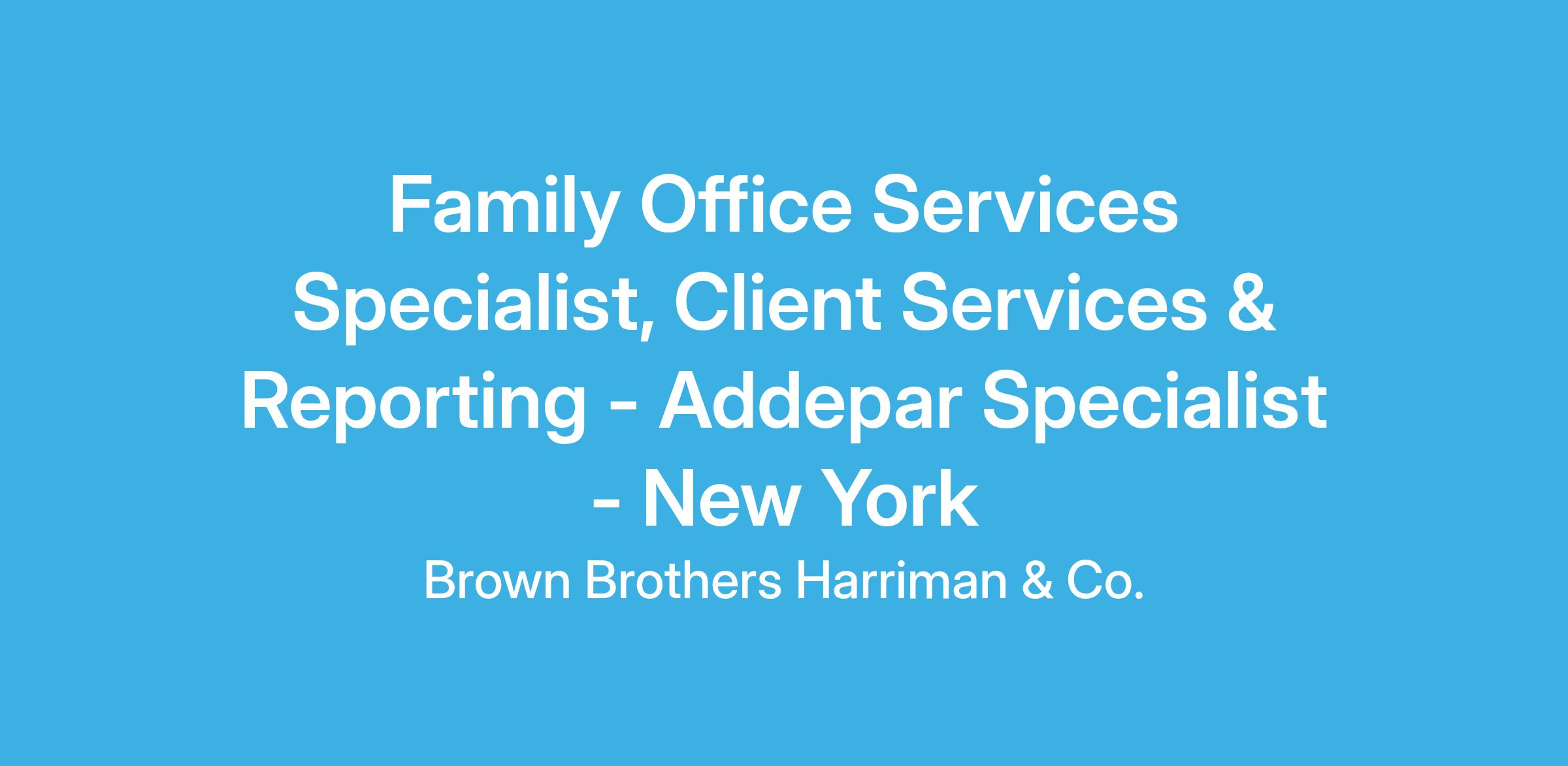 Brown Brothers Harriman is currently recruiting a Family Office Client Services & Reporting - Addepar Specialist to join our Capital Partners team. In this role, you will be responsible for providing consolidated reporting to high-net-worth clients and family offices. You will be responsible for providing consolidated and custom reports in a timely and accurate manner. You will work directly with Relationship Managers and 3rd party advisors. You will handle all client inquiries and resolve issues related to reporting. To be successful, you will need expertise using Addepar, strong technical and interpersonal skills, and communication skills. Our ideal candidate is determined to tackle problems, can skillfully coordinate internal teams, and loves working directly with relationship teams.