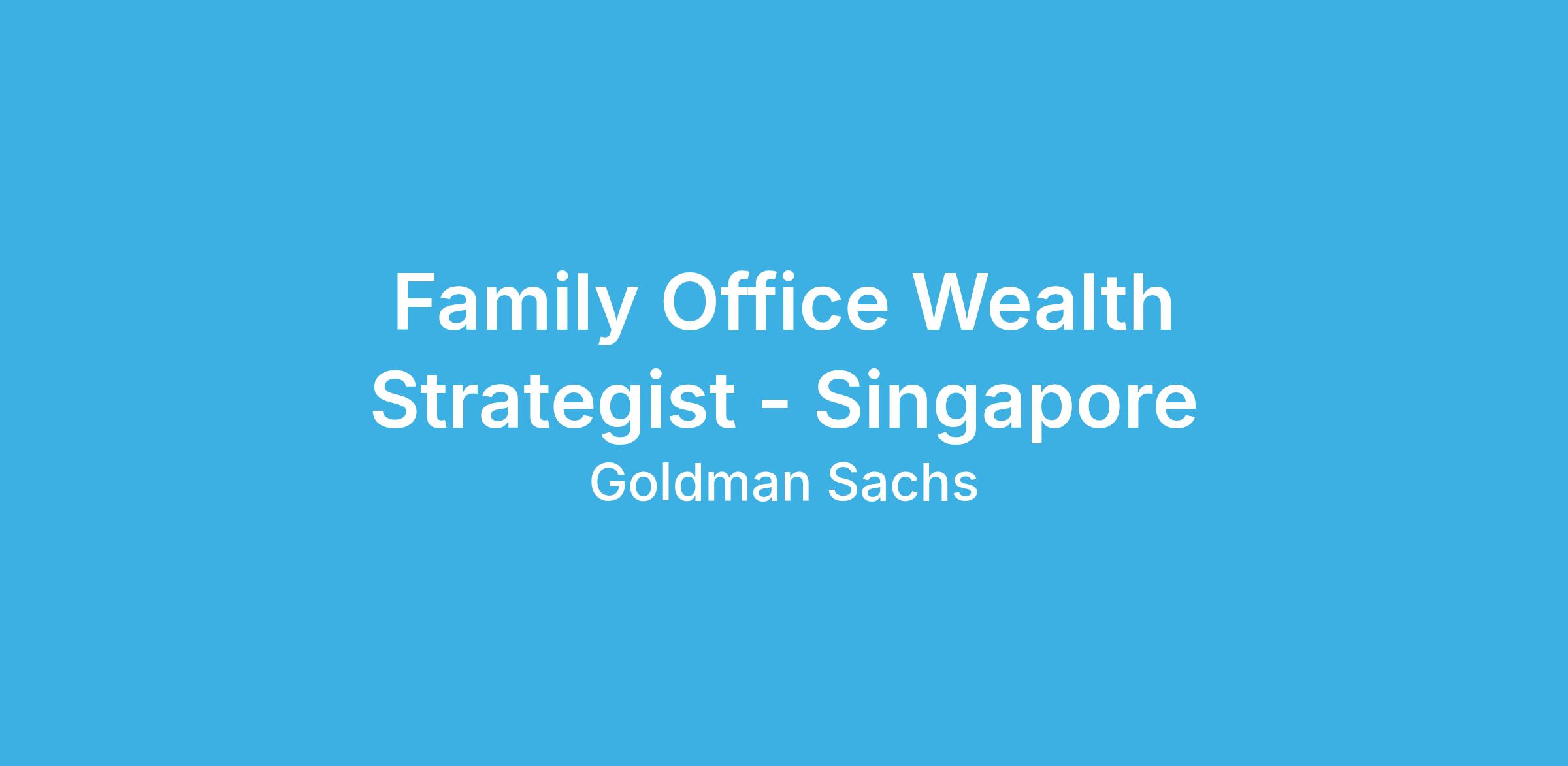 PWM Asia is seeking a candidate to be a wealth strategist in the Goldman Sachs Family Office (GSFO) team in Singapore. The person filling this position would present wealth planning solutions to existing and potential GS clients and their advisors across Asia.