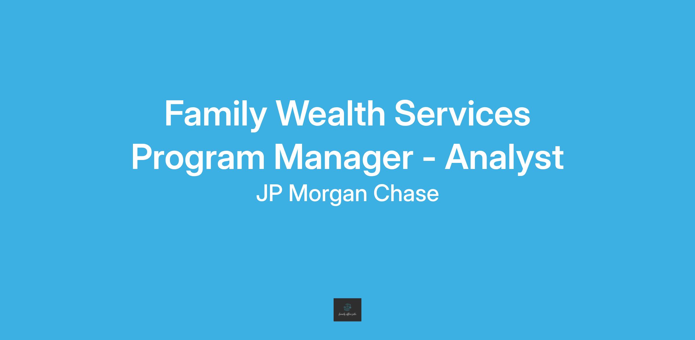 We are seeking a dynamic and motivated Family Wealth Services Program Manager to join our Family Wealth Services team at JPMorgan Advisors. Family Wealth Services offers a comprehensive suite of solutions tailored to assist ultra-high-net-worth families in navigating the complexities of family wealth, addressing client needs in areas such as family dynamics and governance, philanthropy, lifestyle, and family office services.