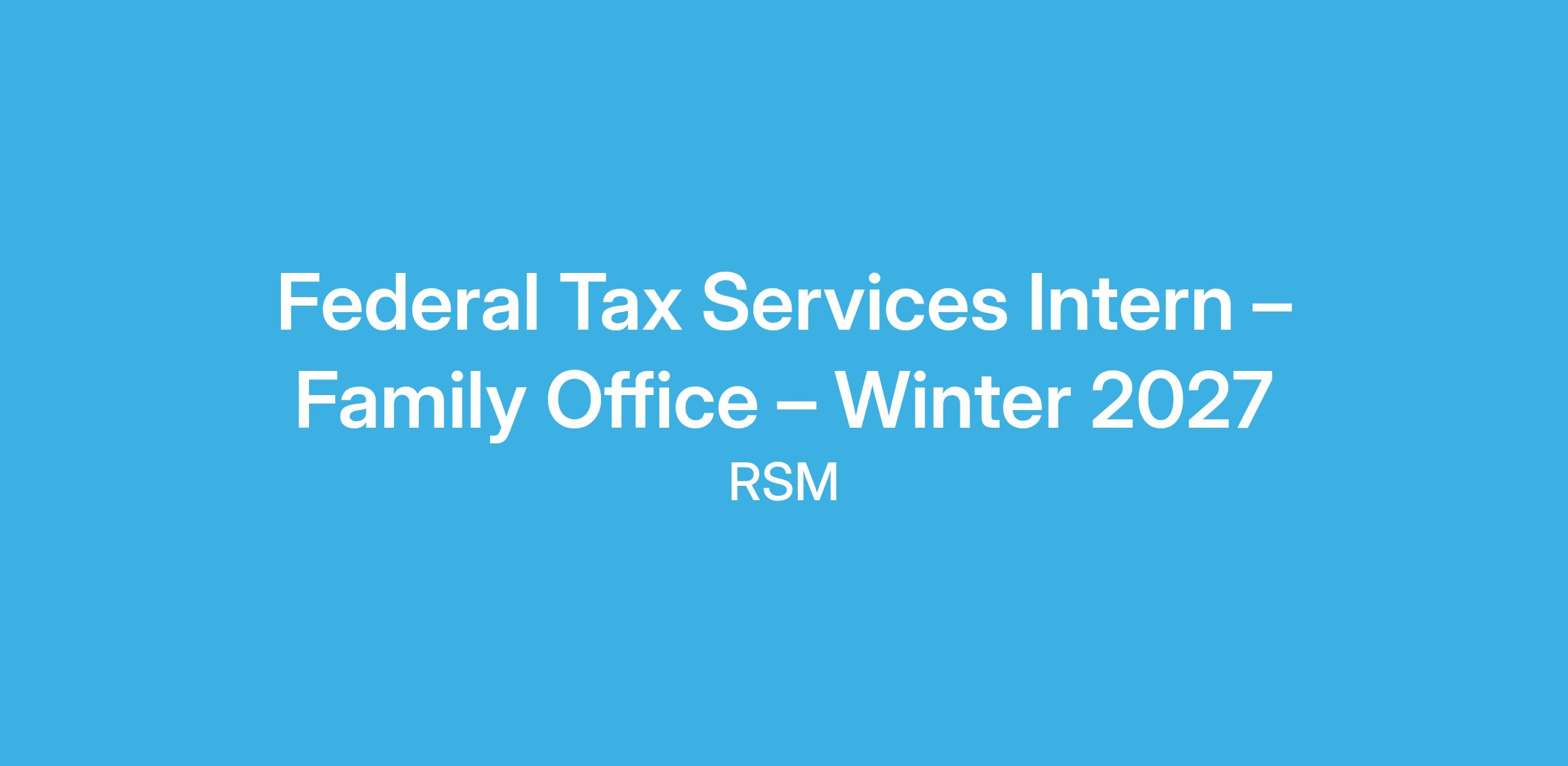 Federal Tax Services Intern – Family Office – Winter 2027