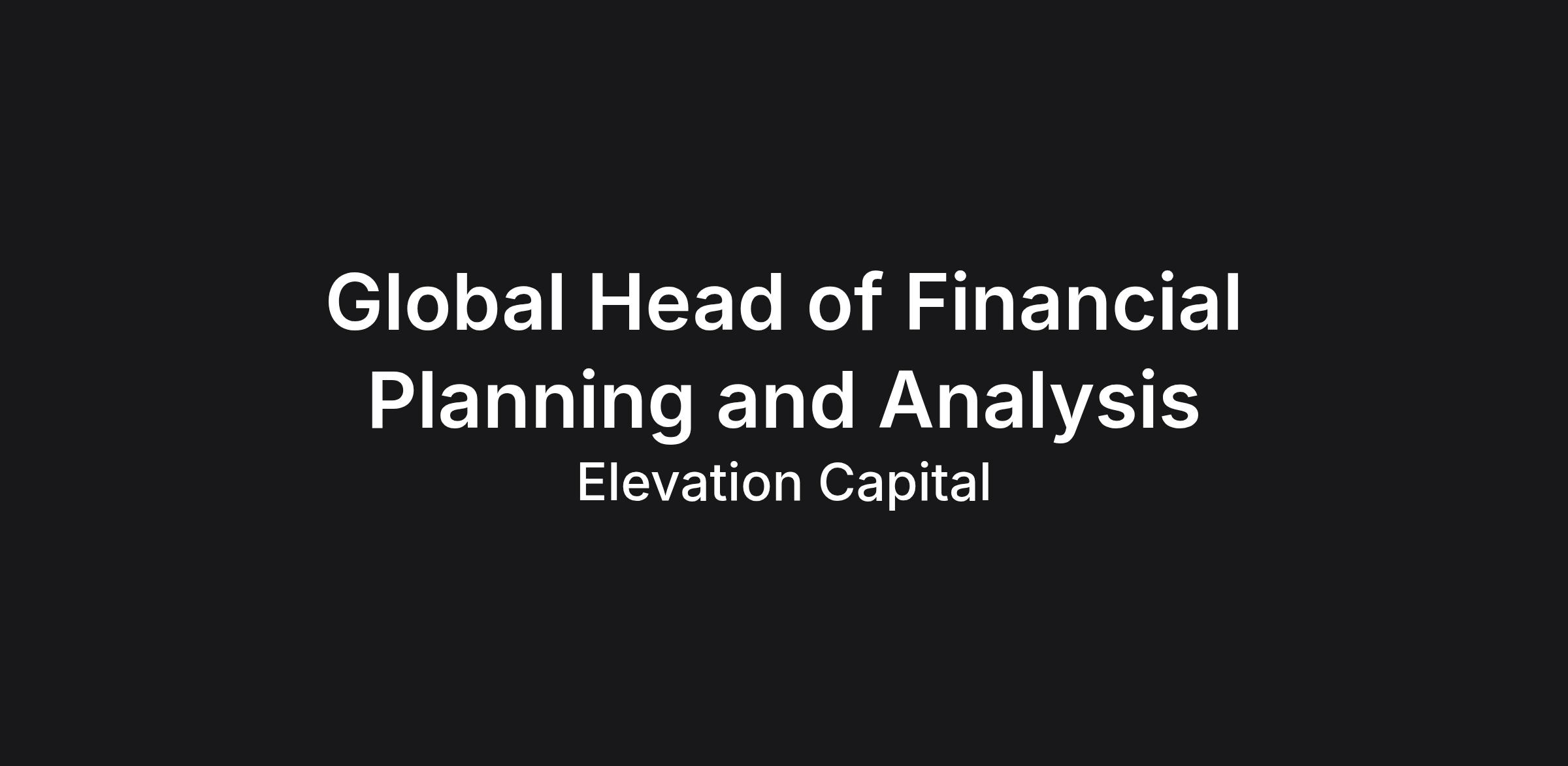 Elevation Capital is seeking a Global Head of FP&A to lead and scale financial planning and analysis across an established global, multi-entity organization. This role exists to strengthen strategic finance capabilities, improve planning rigor, and drive consistent budgeting, forecasting, and reporting across all regions and business units. This is a senior, hands-on leadership role. The Global Head of FP&A will initially operate close to the details while establishing scalable global standards, systems, and operating rhythms. Over time, this leader will build, manage, and develop a high-performing FP&A team.