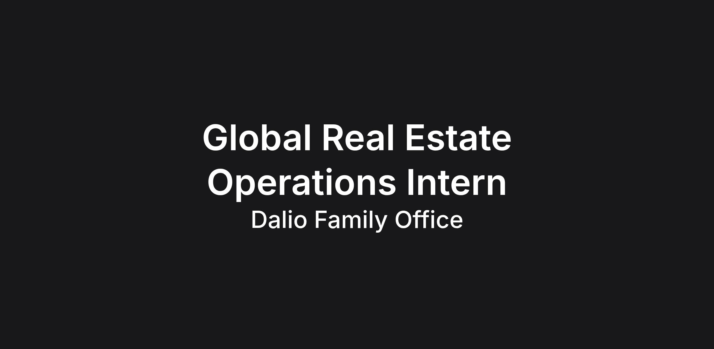 Global Real Estate and Operations Summer 2026 Intern