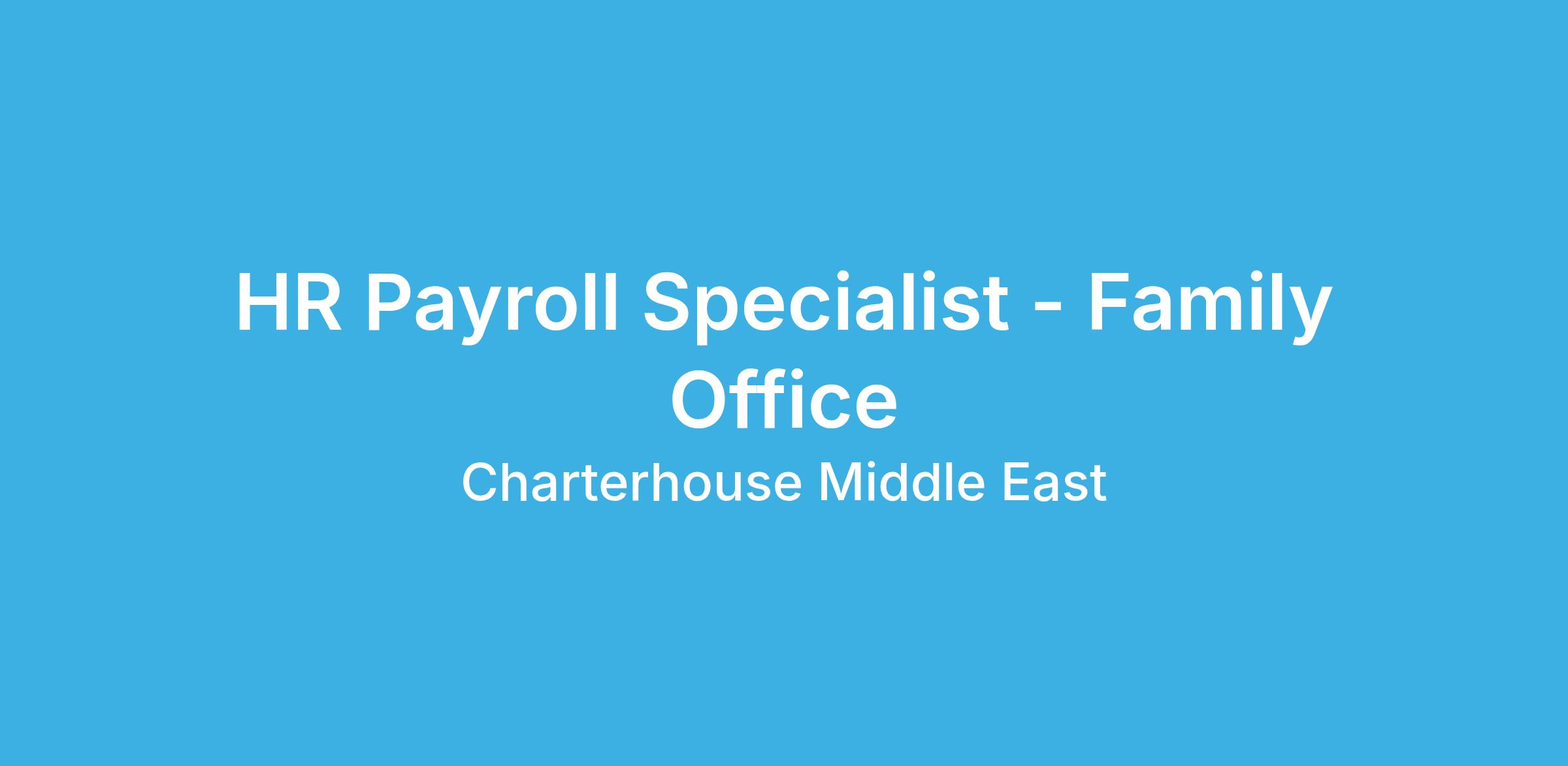 Charterhouse are working with a prominent Family Office in the UAE, which is seeking to appoint an experienced HR Payroll Specialist to join their Dubai office.