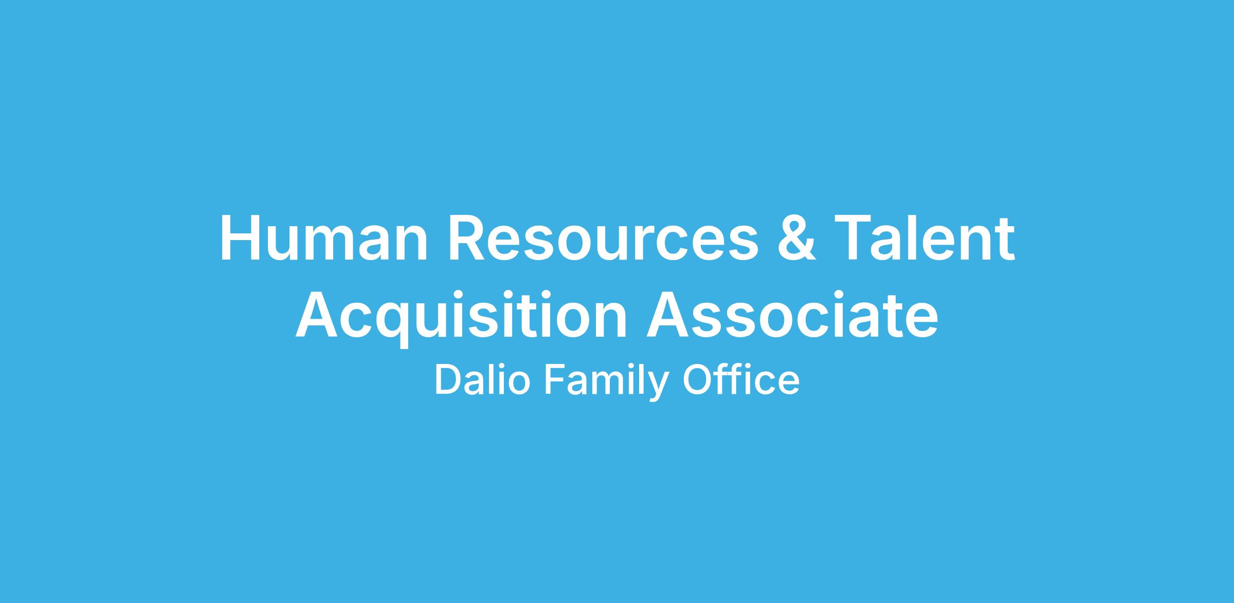 Human Resources & Talent Acquisition Associate, Dalio Family Office Singapore