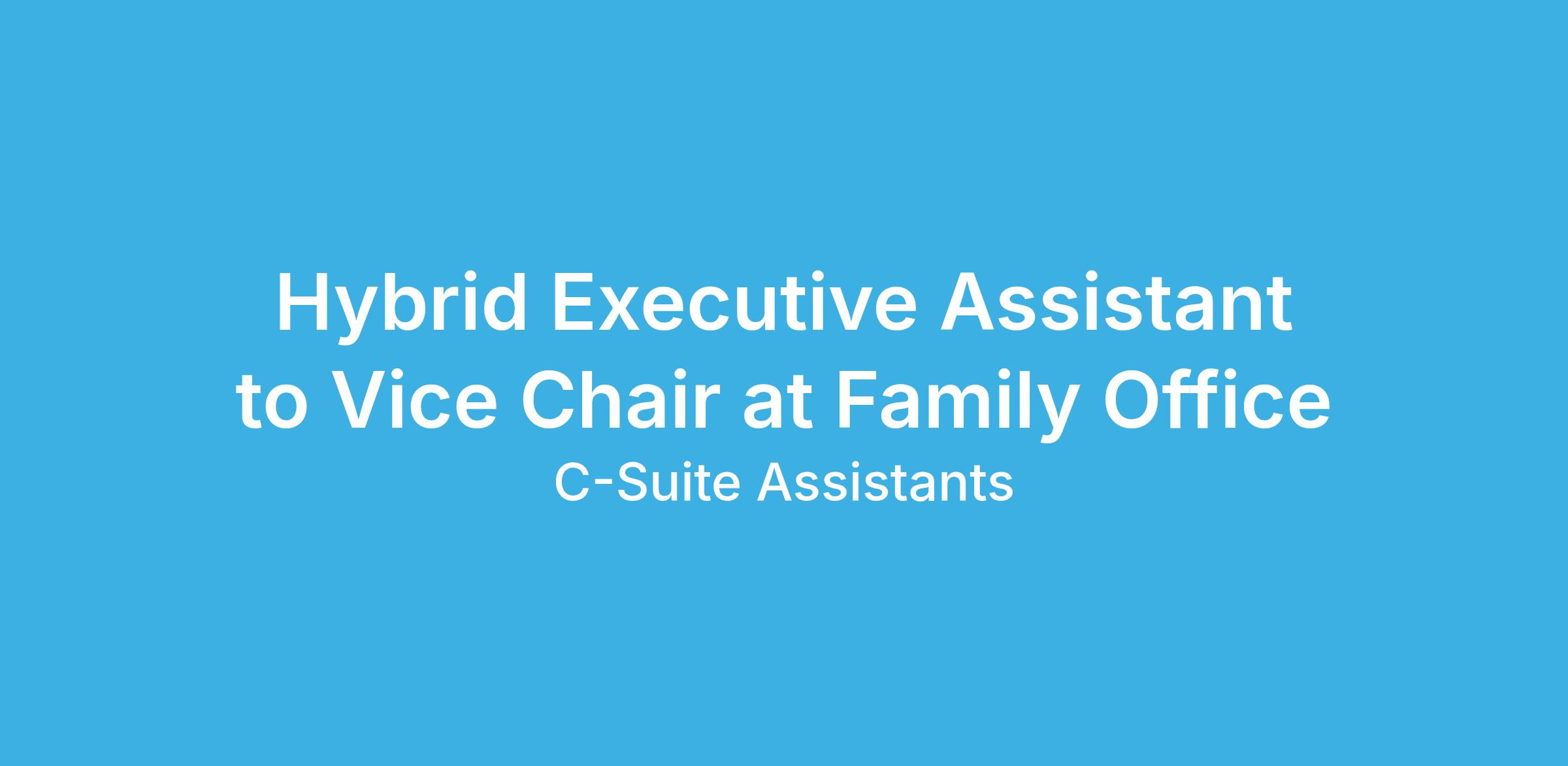 A Vice Chairman of a family office/real estate firm is looking for an Executive Assistant. There was an EA in the role for 10 years. There is longevity among employees at the firm. The role is hybrid: 4 days in office, 1 day remote. The EA will work in coordination with the Chief of Staff. The office is located near Grand Central Station.