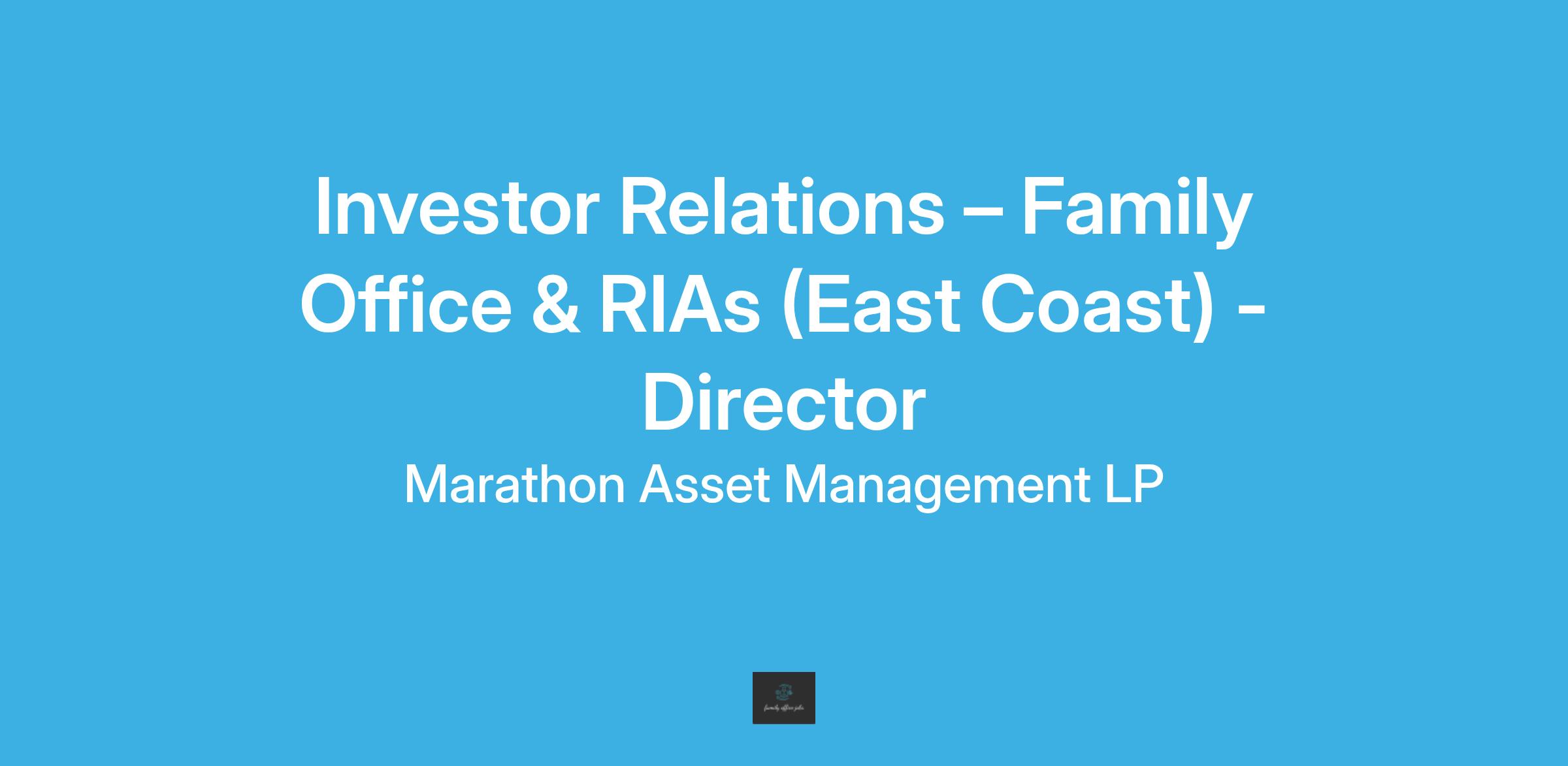 This candidate (who must be located in our New York office) will be responsible for the distribution of all Marathon’s offerings through Family Wealth relationships, which primarily include Registered Investment Advisors (“RIA”) and Multi-Family Offices (“MFO”). This individual will conduct business from our New York office and will service clients located in the East Coast region.