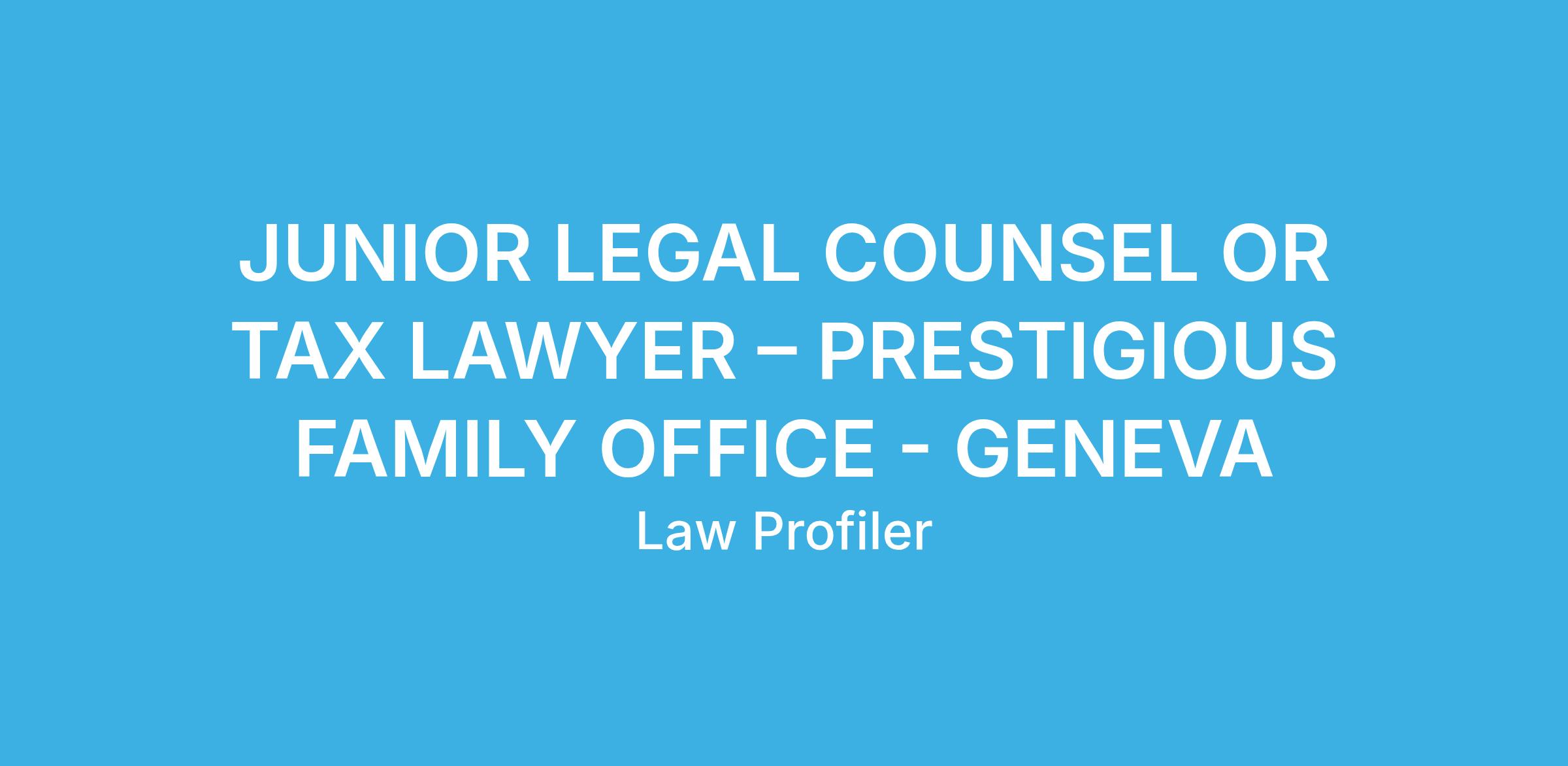 JUNIOR LEGAL COUNSEL OR TAX LAWYER – PRESTIGIOUS FAMILY OFFICE - GENEVA