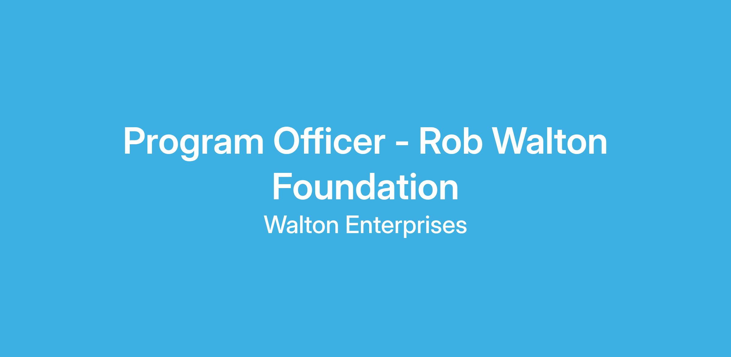 Walton Enterprises is seeking a skilled, highly motivated, and entrepreneurial individual to join the team as a Program Officer for the Rob Walton Foundation.
