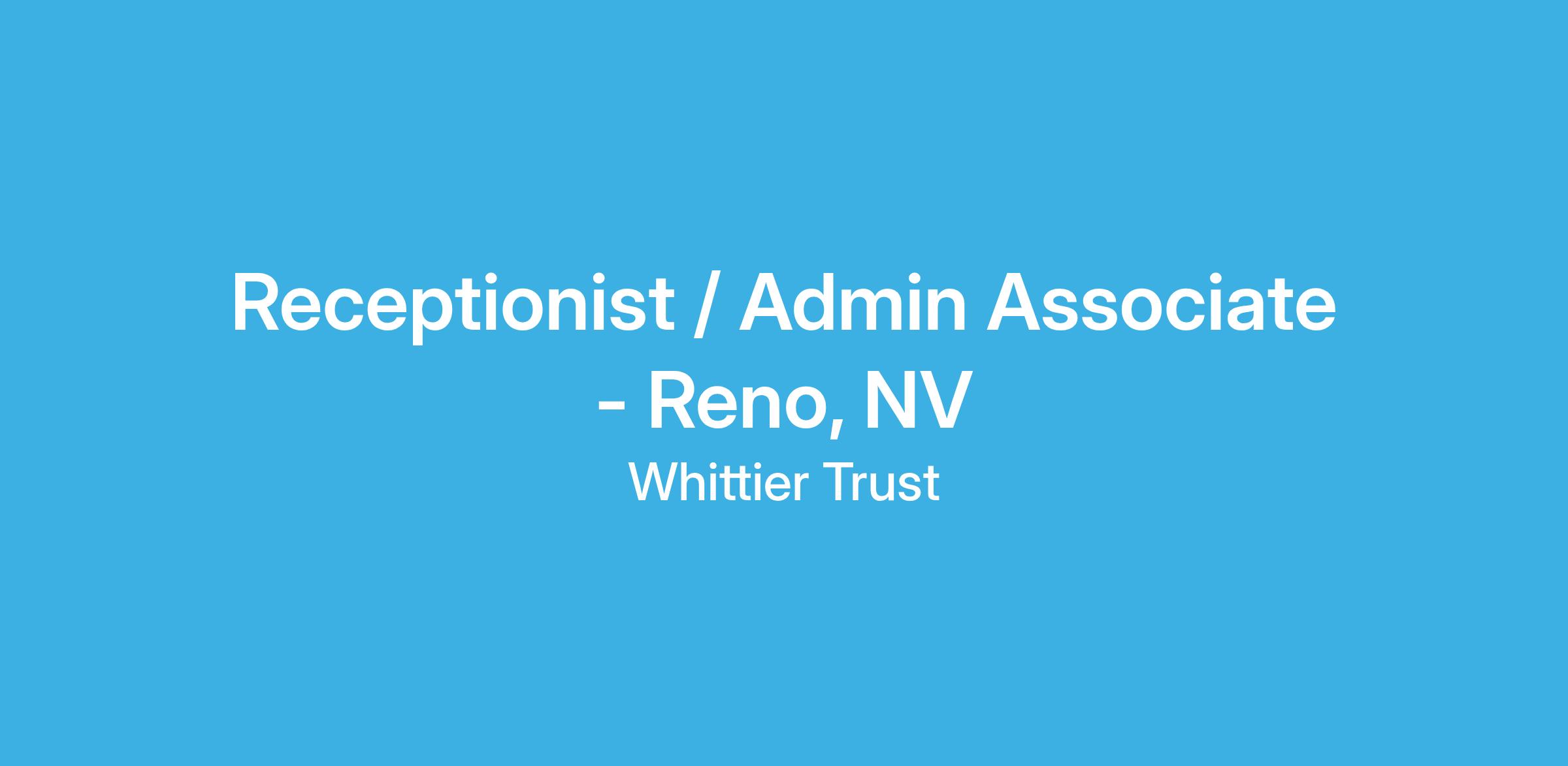 As a Receptionist at The Whittier Trust Company of Nevada, Inc. you will play a vital role in ensuring our guests, visitors, and staff have a memorable and enjoyable experience. You will be responsible for providing outstanding customer service, managing front desk operations, and assisting guests with their needs.