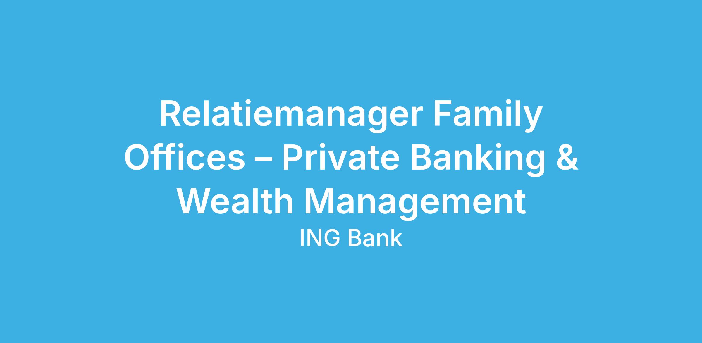 Dit is een unieke kans om te werken aan de frontlinie van ING’s Private Banking & Wealth Management-strategie. Je hebt contact met enkele van de meest invloedrijke klanten in de markt, ontwikkelt innovatieve financiële oplossingen en draagt bij aan ING’s lange termijn succes in het UHNW-segment.