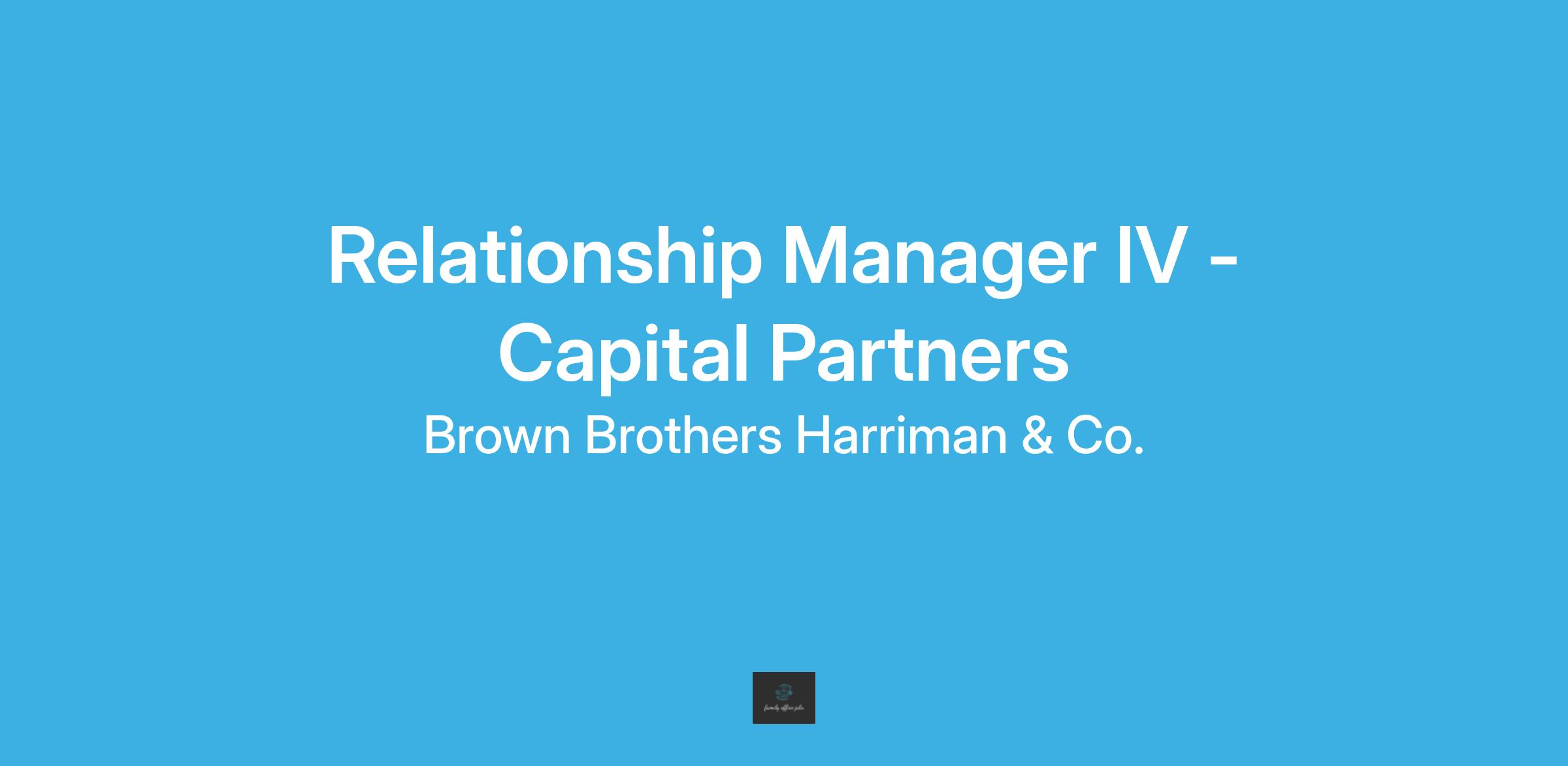 Brown Brothers Harriman is currently recruiting for a Relationship Manager IV to join our Capital Partners, multi-family office (MFO) team in Boston. In this role you will oversee and serve as the point person for ultra-high net-worth clients while managing a broader support team of Relationships Associates and Client Associates. BBH Capital Partners provides integrated comprehensive solutions to help our clients achieve their definition of success. You will have the opportunity to engage with clients across all our areas of competency including private equity, commercial lending, and family business/corporate advisory.