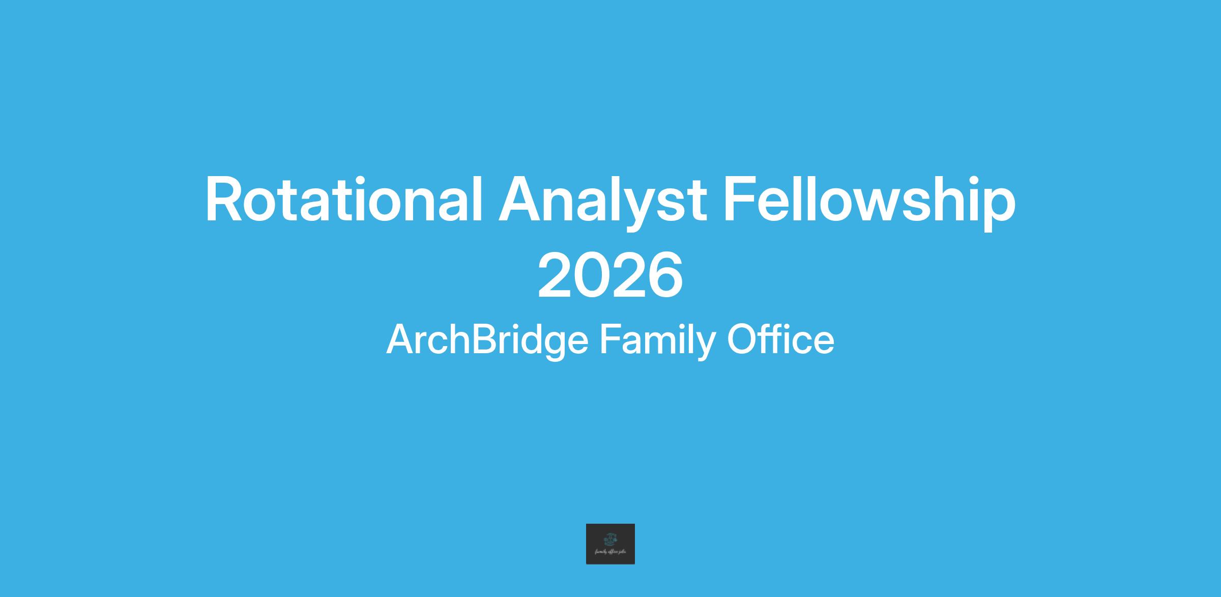 ARCHBRIDGE FAMILY OFFICE is seeking candidates for our two-year Rotational Analyst Fellowship program. This is a great opportunity for new graduates to explore a career in financial services with a growing, successful company. ArchBridge works with approximately 65 client families across the country, advising on more than $15 billion of total wealth.