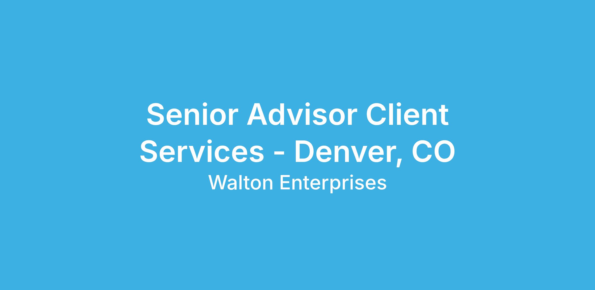Location: Denver, CO with periodic travel to household or other Walton Enterprises offices