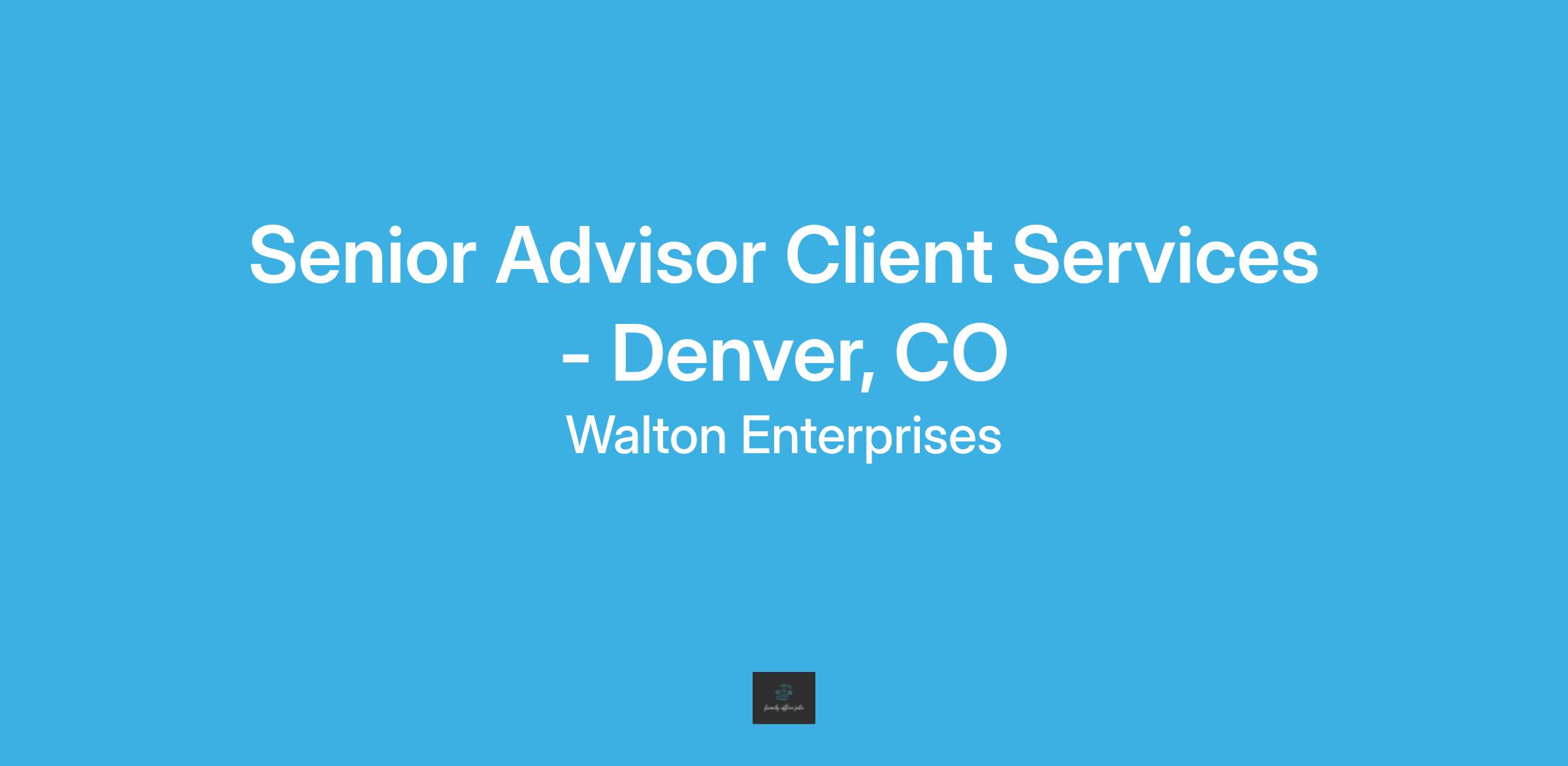Location: Denver, CO with periodic travel to household or other Walton Enterprises offices