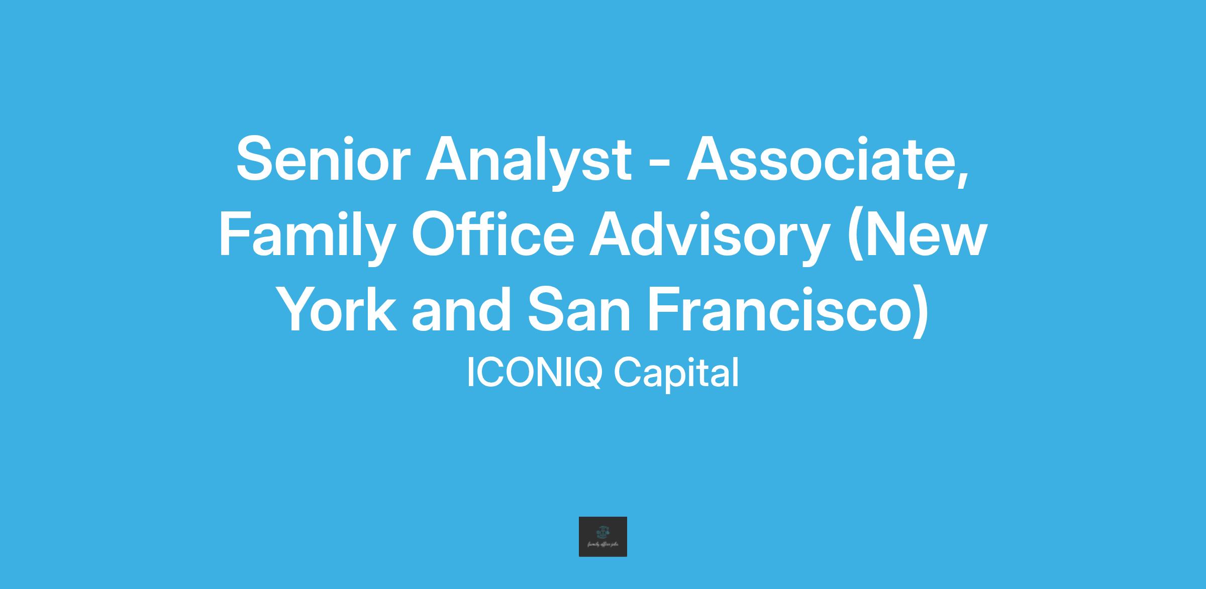 Please note: We are continuously seeking talent for opportunities within our Client Advisory business and this job has been posted to support talent pipelining efforts. To register your interest in future [choose one: Financial Advisory/Family Office Advisory] roles within ICONIQs Client Advisory team, apply here and we will be in touch. We are interested in speaking with applicants open to working in either our San Francisco or New York office.