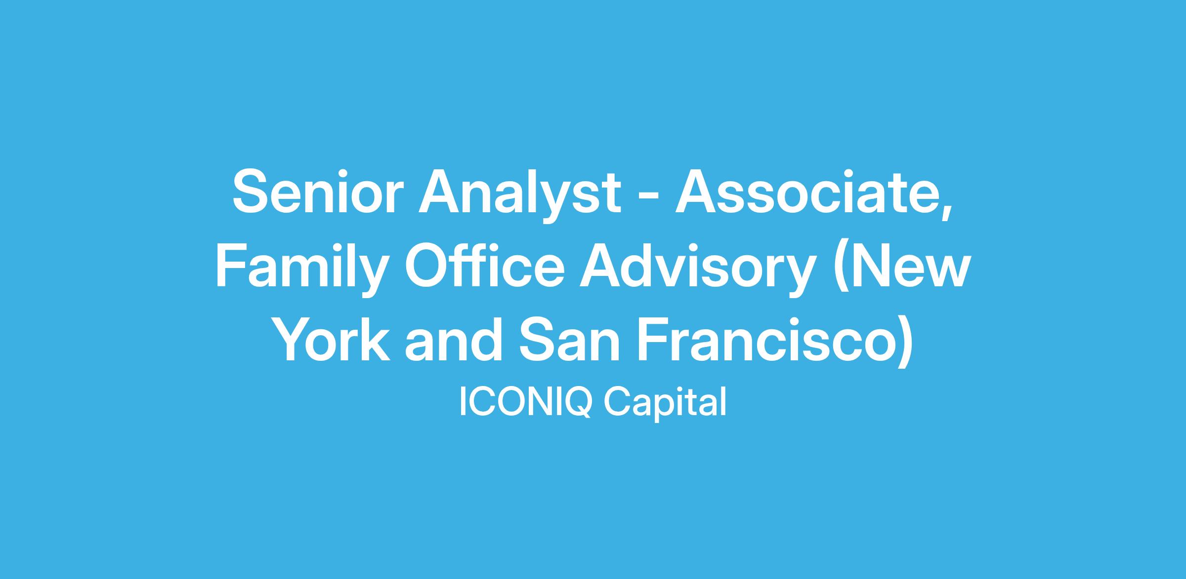 The Opportunity: Family Office Advisory, Senior Analyst