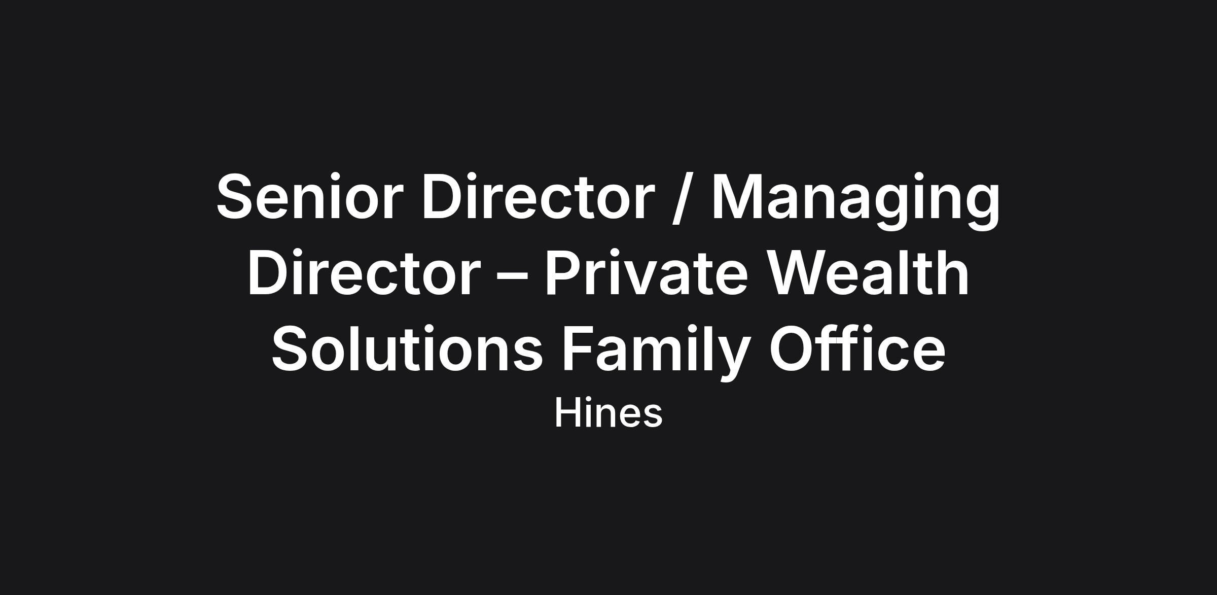 Hines Private Wealth Solutions is scaling rapidly across Asia-Pacific. We are looking for a results-driven Managing Director to lead family office and family wealth coverage across the entire APAC region.