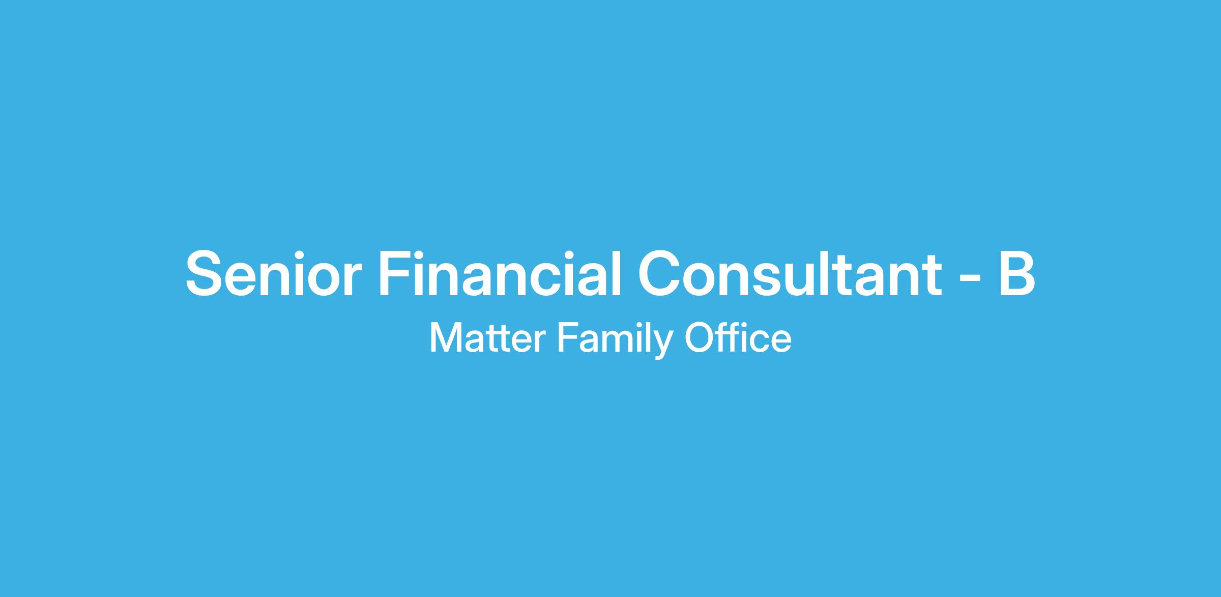 As a Senior Financial Consultant, you will bring your expertise and experience to our team and understand what Matter does for each of our families. You’ll be ensuring successful execution of each assigned client’s work plan through a combination of coordinating with Directors and Partners, interacting with clients, delegating and reviewing work, and completing follow-up items. You will engage with families on all Matter’s services – Investment Management, Wealth Planning & Coordination, and Family Learning & Communication.