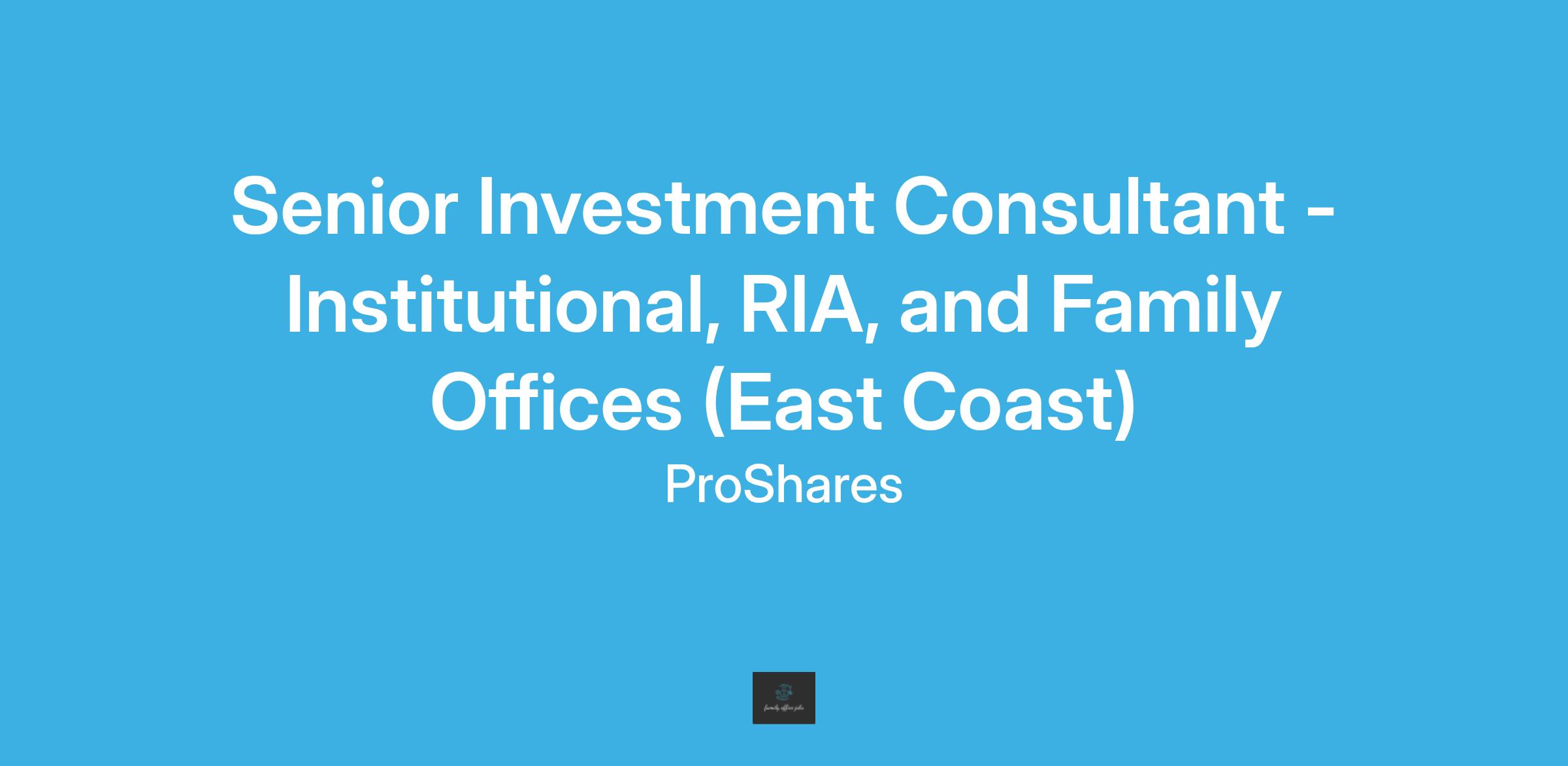The Senior Investment Consultant will be responsible for the distribution of all ProShares strategic product offerings through institutional relationships which include Registered Investment Advisors ('RIA"), Bank Trust and Single and Multi-Family Offices.