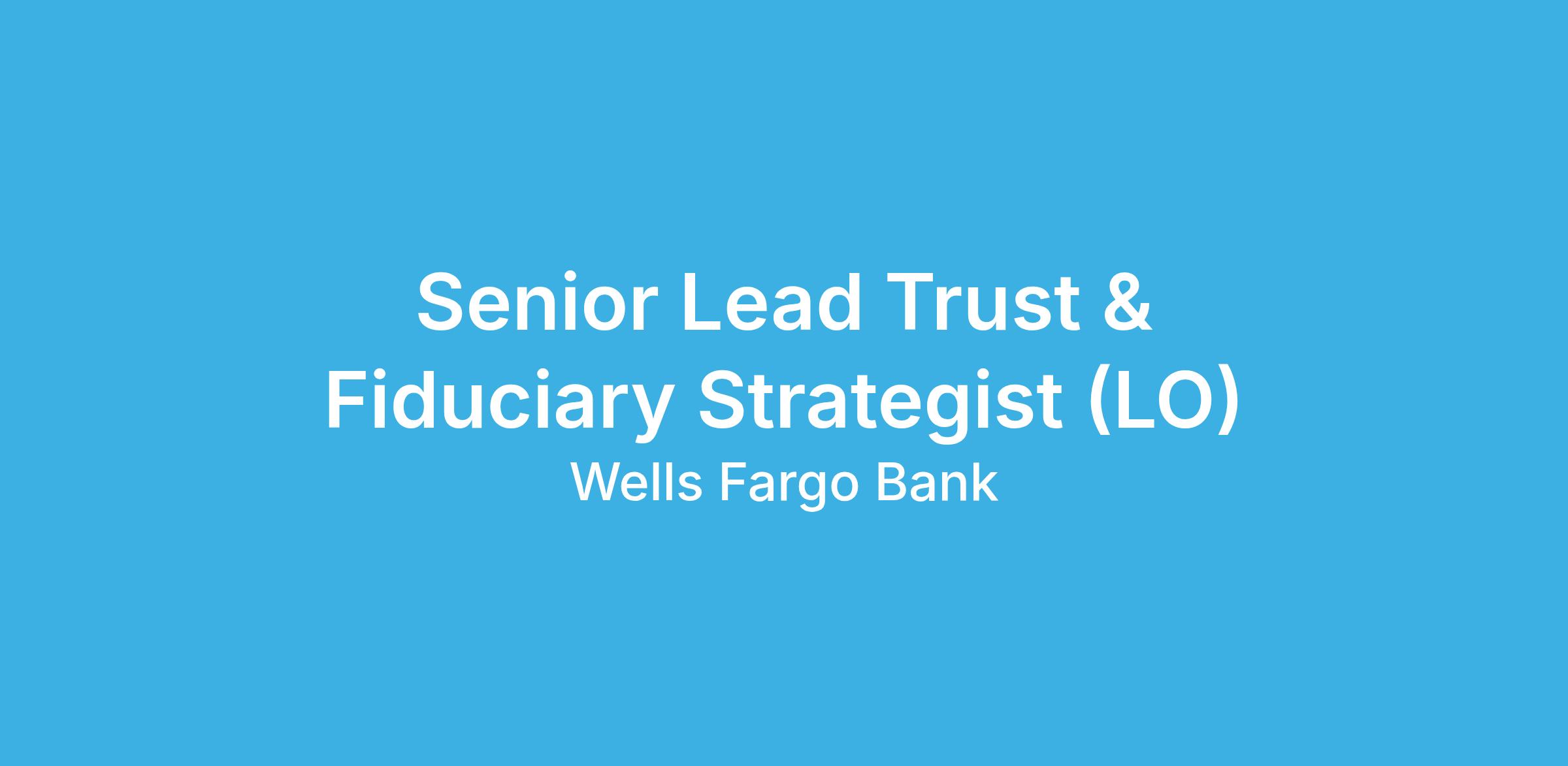 Wells Fargo is seeking a Senior Lead Trust and Fiduciary Strategist (LO)