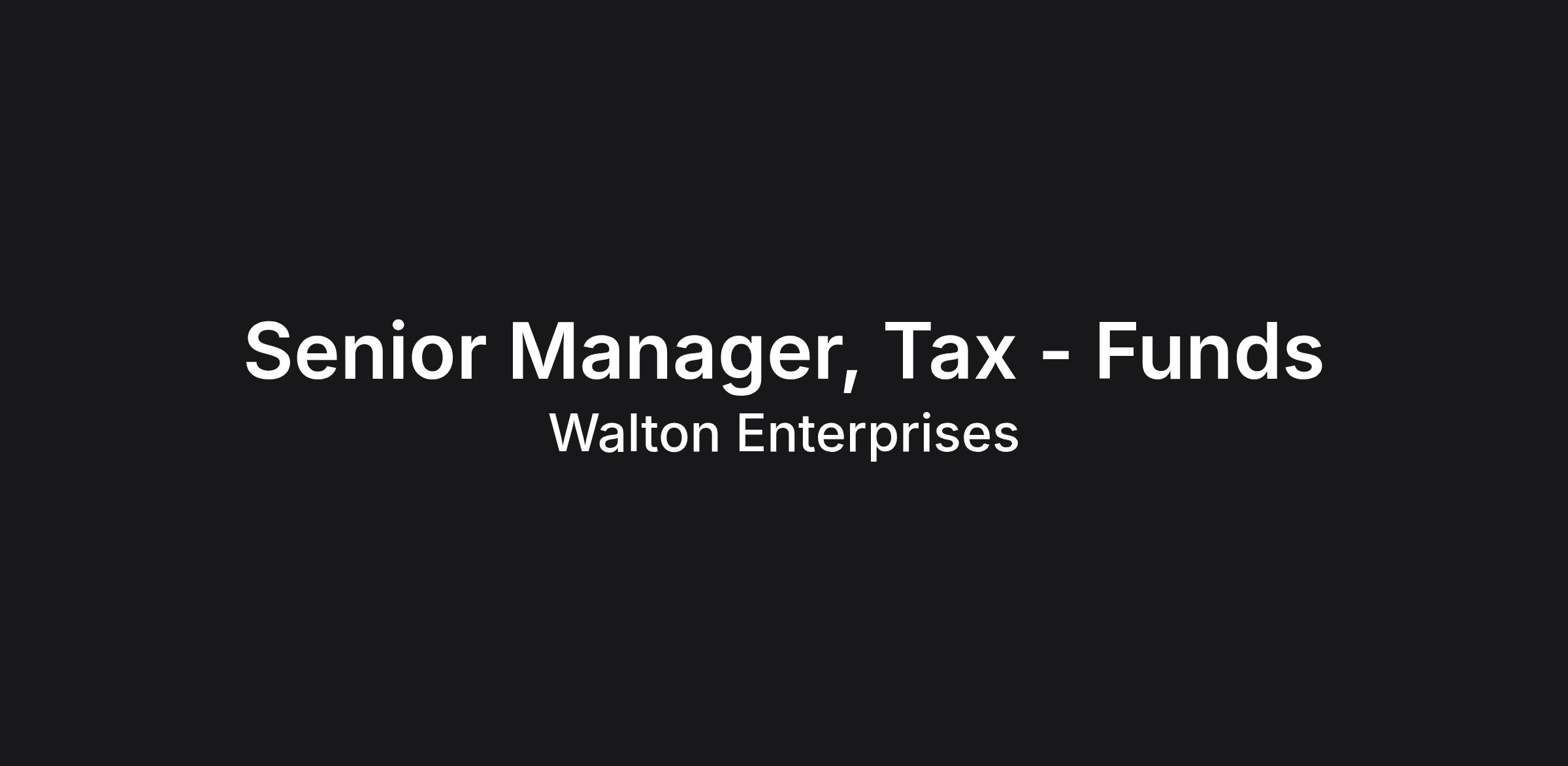 Walton Enterprises is seeking a skilled, highly motivated and entrepreneurial individual to join the team as a Senior Tax Manager – Funds. The ideal teammate demonstrates advanced expertise in partnership taxation, alternative investments, and real estate structures while providing strategic leadership across complex tax compliance and planning activities.