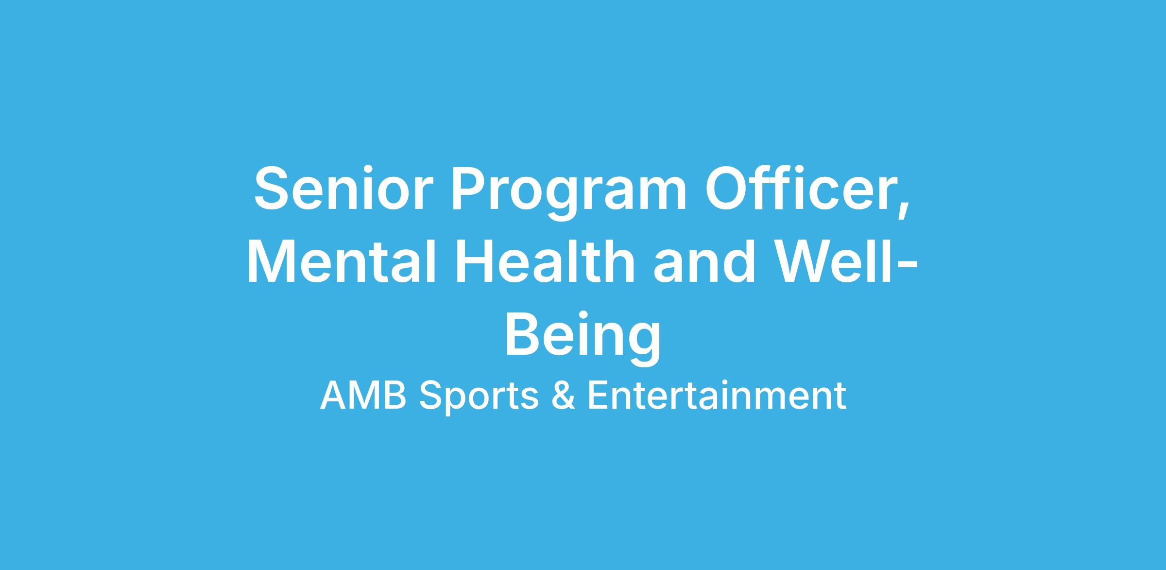 Senior Program Officer, Mental Health and Well-Being Key Responsibilities: